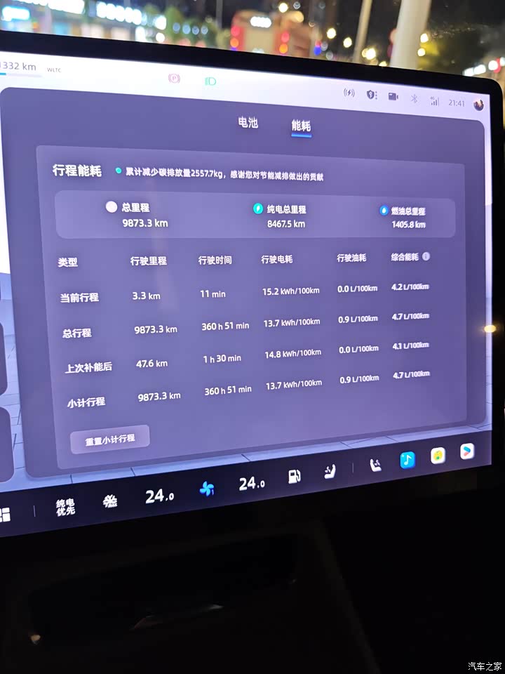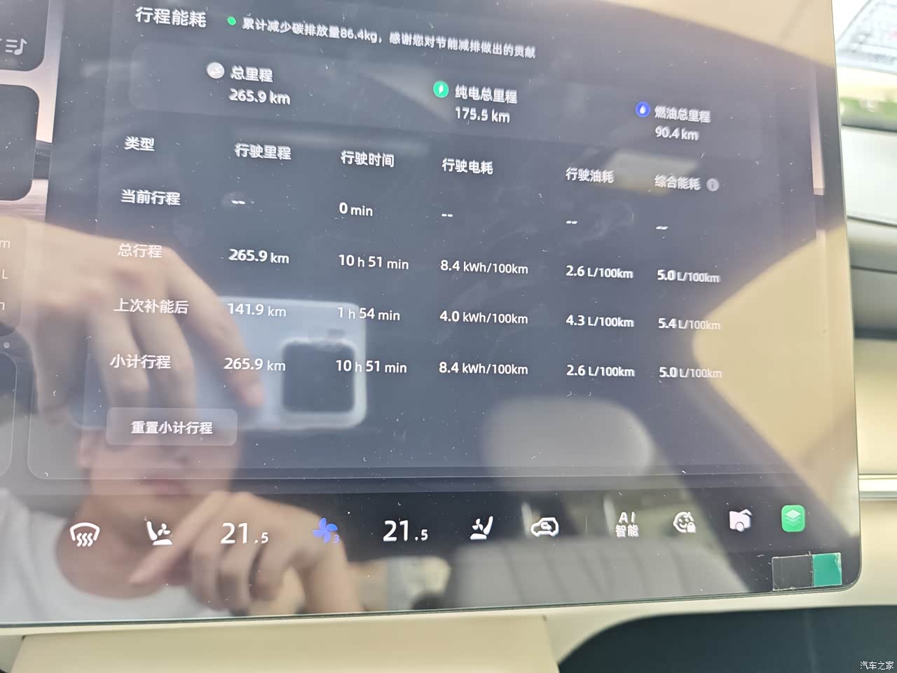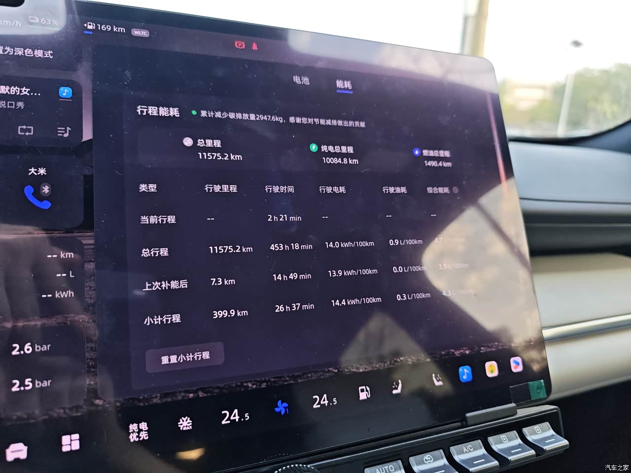 现在跑了10000多公里,驾驶模式有AI智能、纯电优先、燃油优先,前两种感觉差不多,都是电用到17%就开始用油,燃油优先是速度高了就用油。我高速跑得多,充满电纯电续航也就160公里左右,百公里电耗17-18度,这纯电续航真没达到我预期,本来以为能跑170-180公里,看来只有市区开才能接近这个数。不过燃油优先模式下,高速油耗5.5-5.7个,这么大的车,油耗这点倒挺满意。