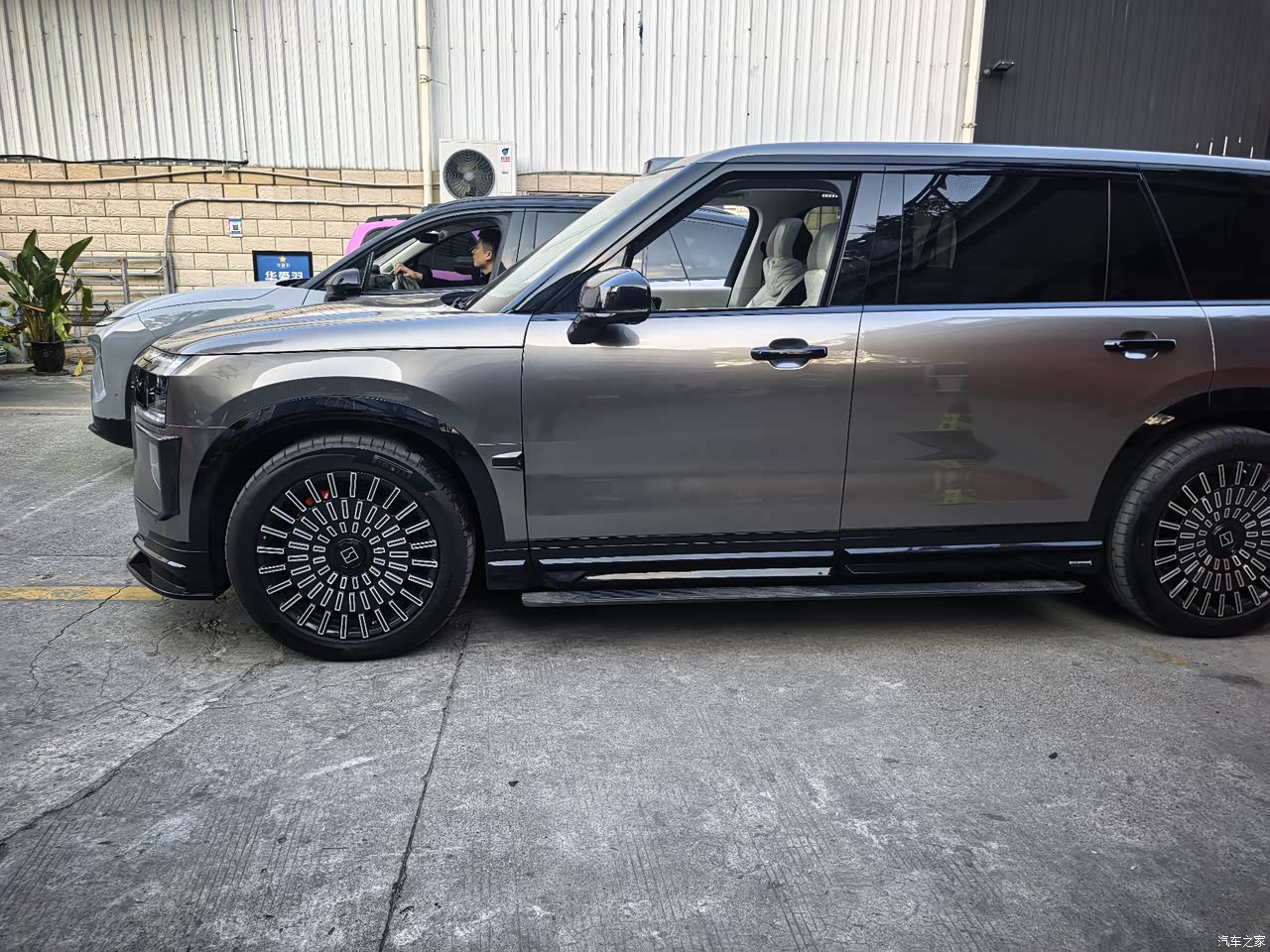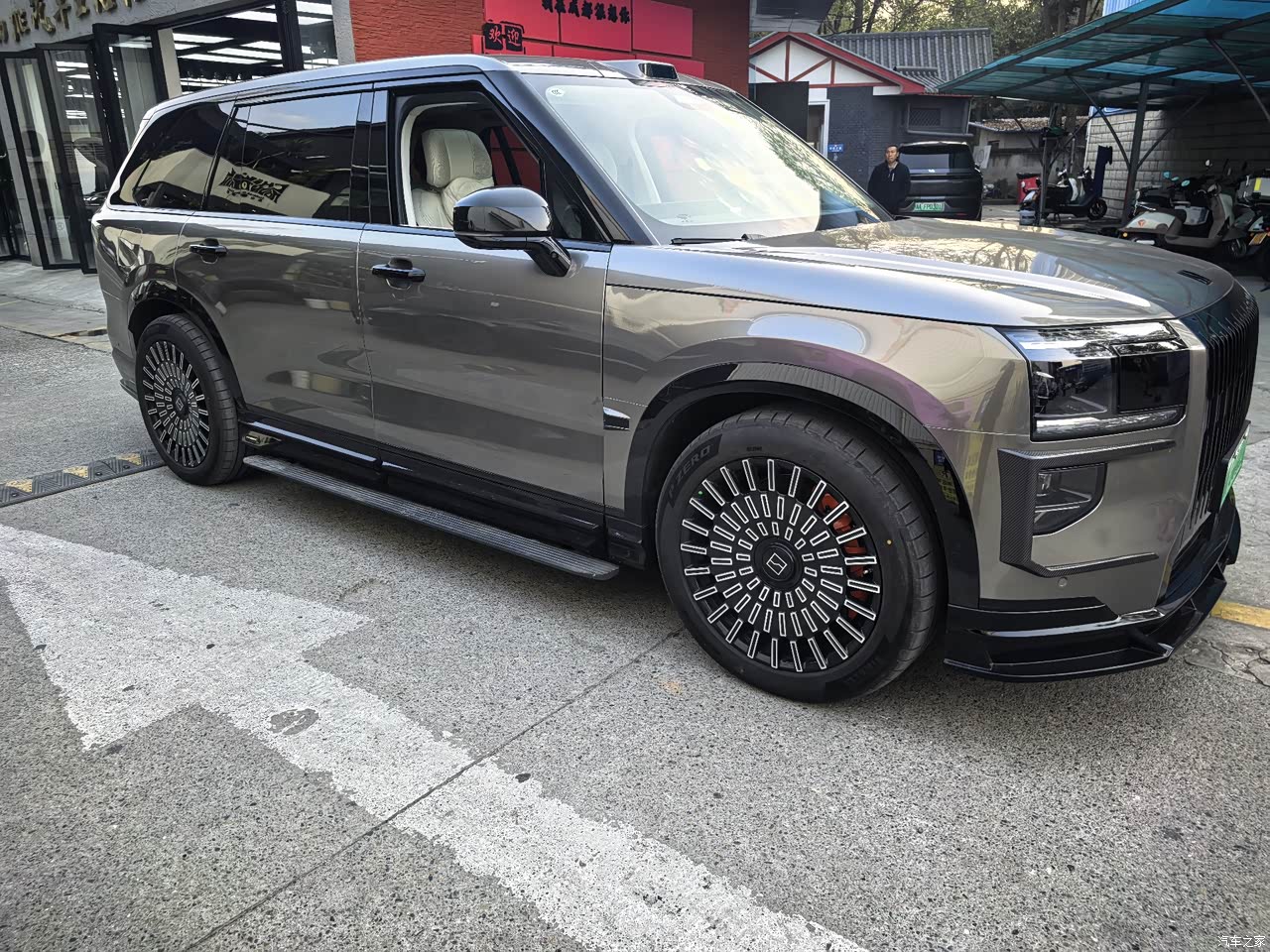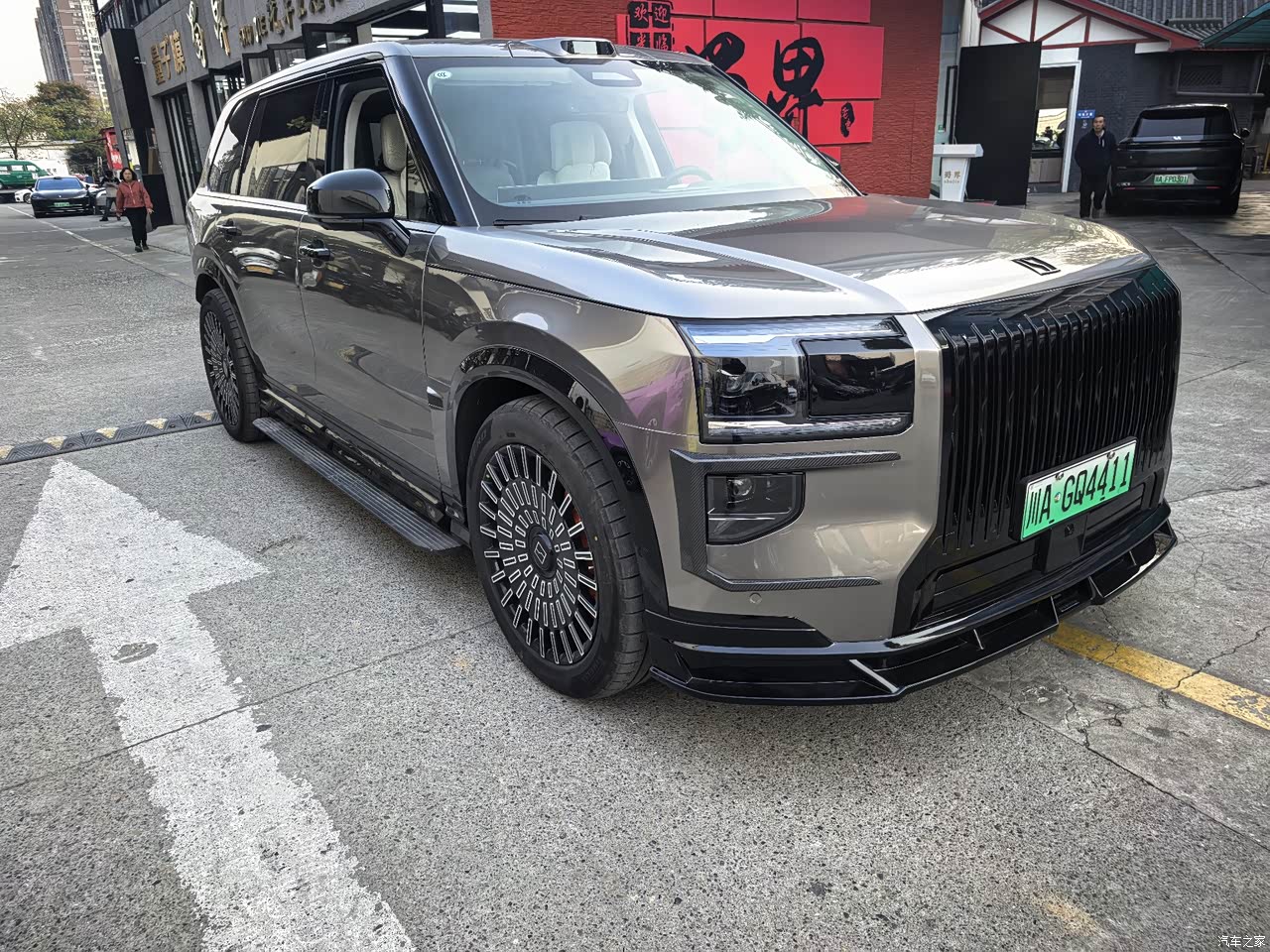 大气、有型、有气势、5239mm×2029mm×1819mm车身尺寸搭配3169mm超长轴距,有超越百万级豪车的气场,而且这个外观非常独特。前脸一体式熏黑进气格栅搭配加宽台基设计,稳重又不失张力,A柱、外后视镜全黑化处理。黑化轮毂、封闭式造型符合新能源调性,又有低风阻的设计用途。侧面线条干净大气,电动天地门设计实用又显档次。