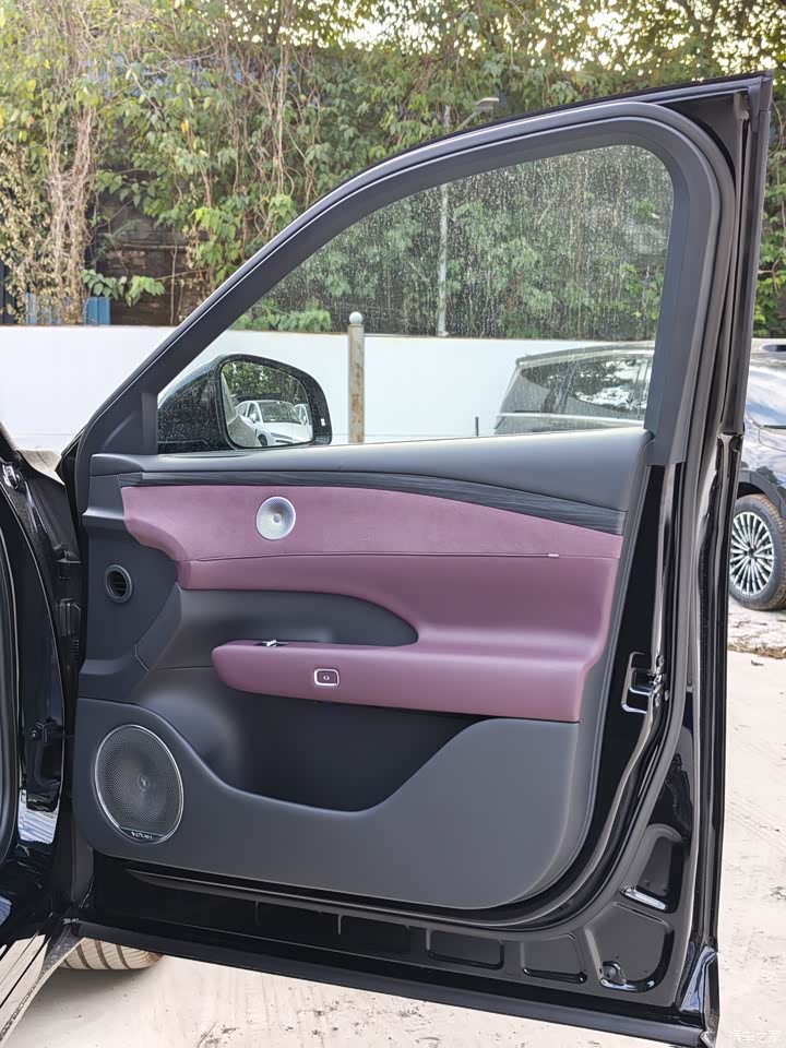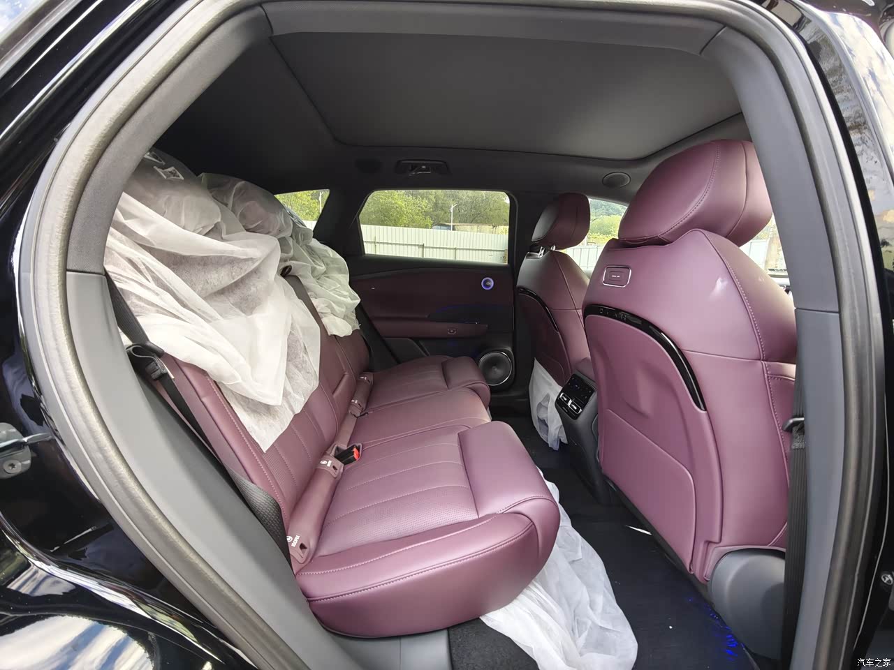 我选的紫色内饰,温温暖暖的,坐进去就很有安全感,一点不压抑。提车的时候车内没什么异味,放了两三天就完全散了,这点特别放心。座椅是仿皮材质,填充饱满,主副驾都有加热、通风和按摩功能,冬天加热30秒就暖了,夏天通风能降温,跑长途开按摩,腰背疲劳能缓解不少。后排也有加热和通风,家人坐车都能舒舒服服的。