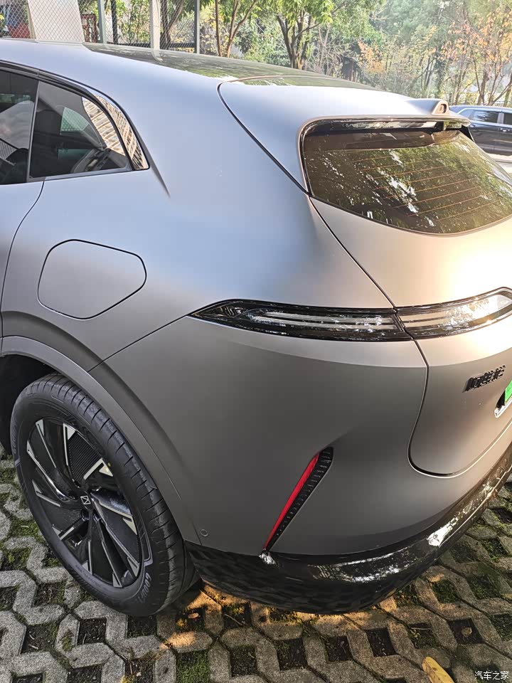 外观设计的很有特点,前脸LED大灯,夜 间点亮辨识度拉满;车身线条流畅,灰色贴 了哑光车衣非常有质感,停在路边回头率超 高。