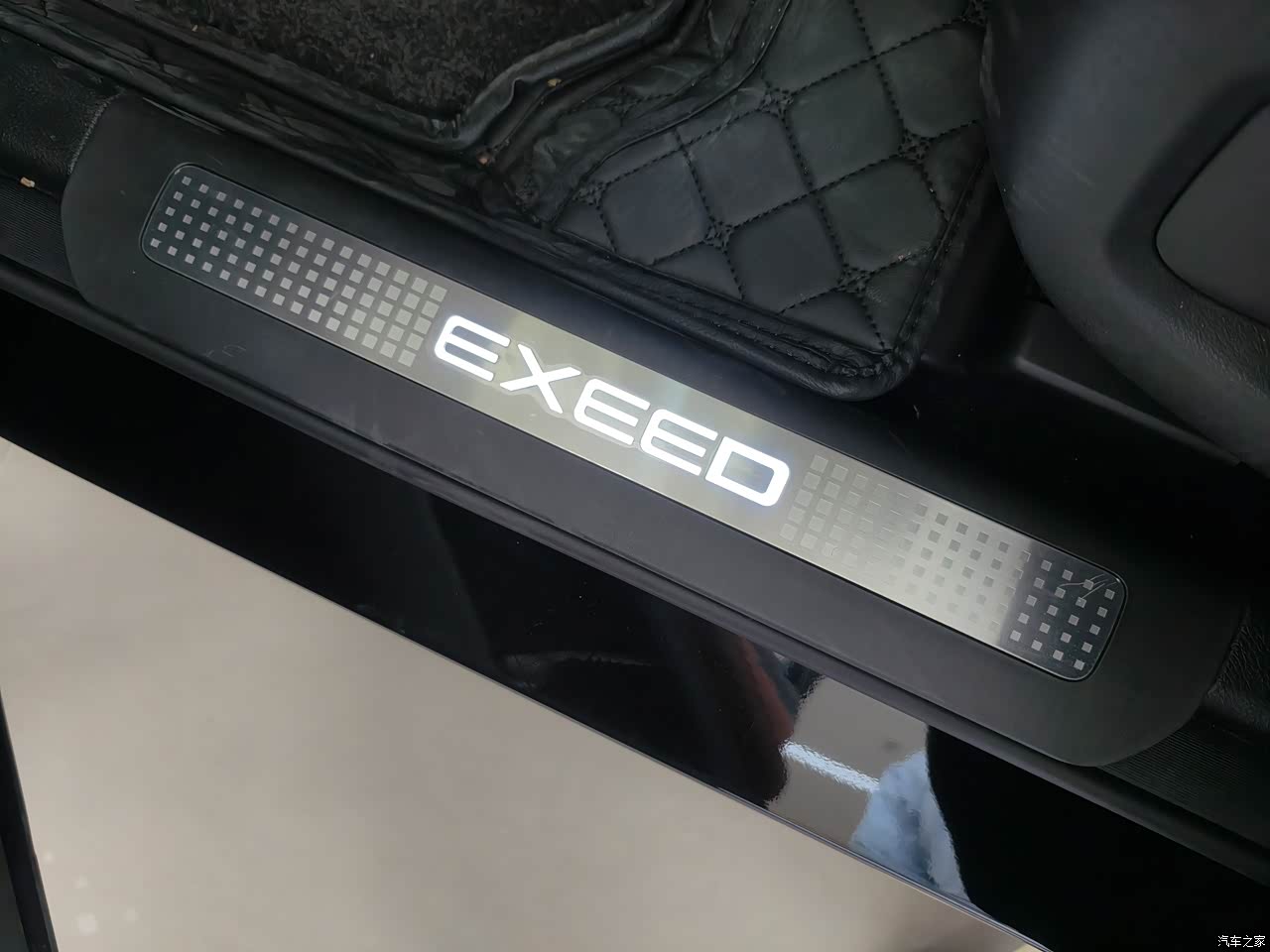 前脸上图有,这里不再赘述了,看一下皮肤,车尾的造型还是很协调蛮不错的。尾灯有设计感,细看内部竖条的小颗粒很精致,亮灯时非常漂亮。还有发光门槛的logo灯,更加精致和高端,整体的尾部也是很饱满,漂亮
