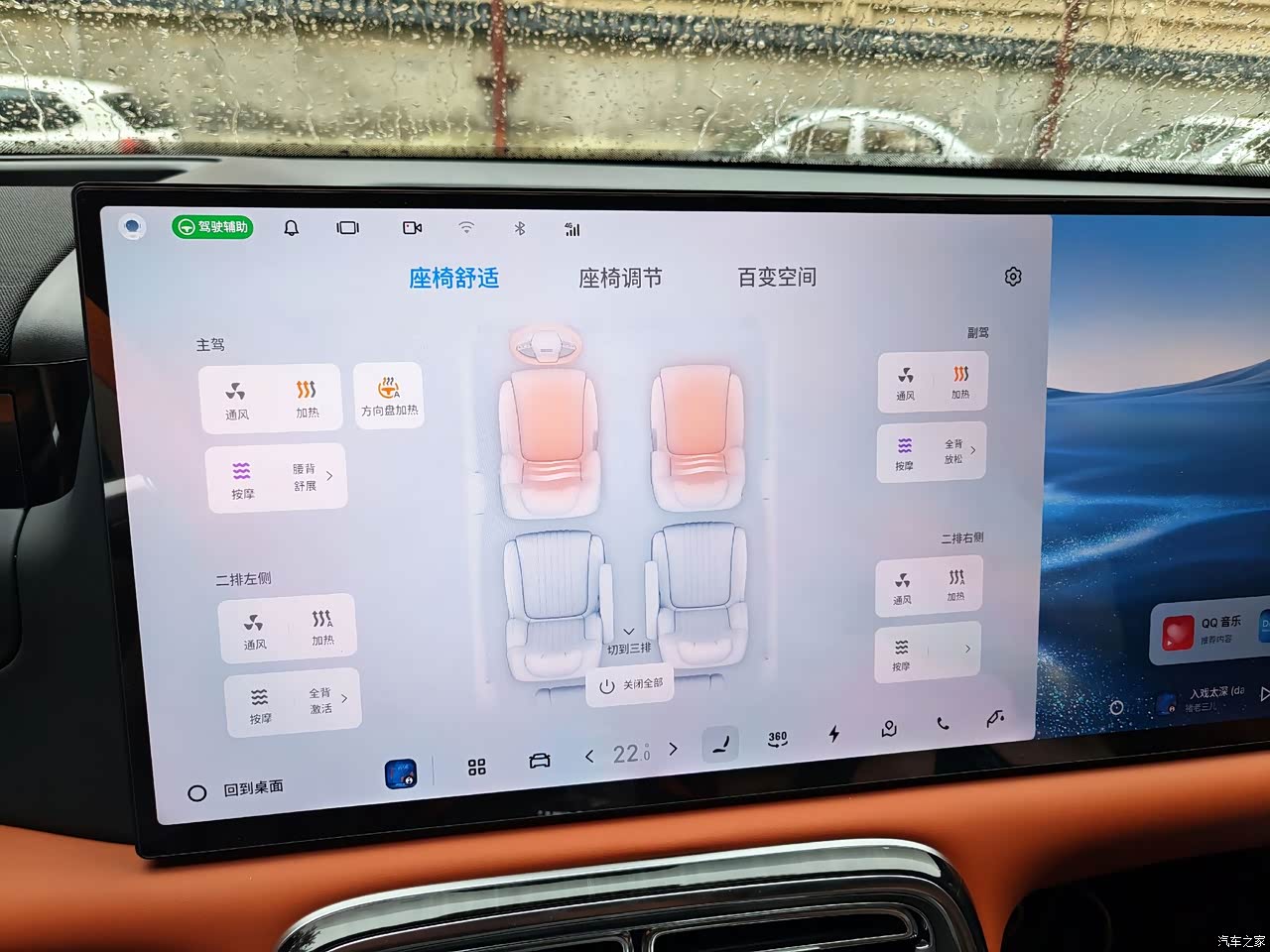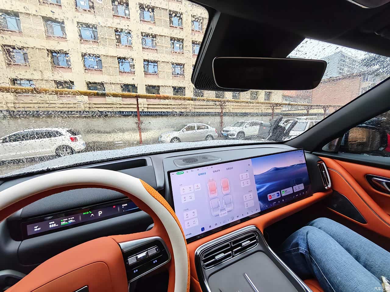来到车内以后可以感受到这款车的高端与科技,车内的设计和用料都很好,中控屏有着较大的尺寸,可以旋转,在使用中更加便利,语音控制的功能也非常多,关键是识别的能力很精准。