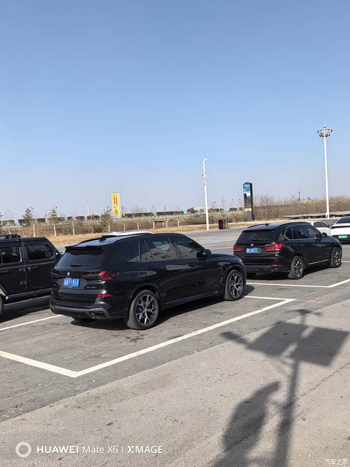 正好高速服务区碰到上一代X5,每一代出来都是经典,大伙都喜欢纯黑,其实我更喜欢银色装饰,只是这一代没有了。 新车买来先换了M的尾翼,效果真不一样,有提车的车友你安下可以试试。 终究还是那句话,蓝天白云才是我儿时的梦。