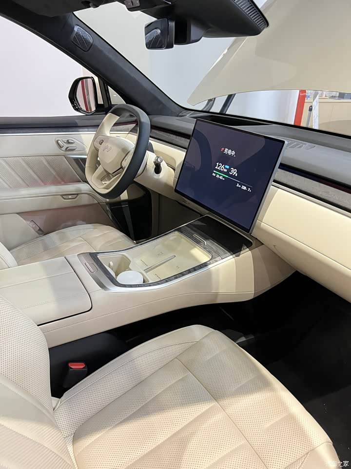 内饰堆料也很足,座椅是纳帕真皮的,包裹性很强,很舒服。还用了非常多的软包和全车环绕木饰板,中控屏是横屏,很大。还有抬头显示,杜比音响,全车氛围灯。冰箱彩电大沙发都是标配,就不更多赘述了,选高配还带二排右侧的零重力座椅。