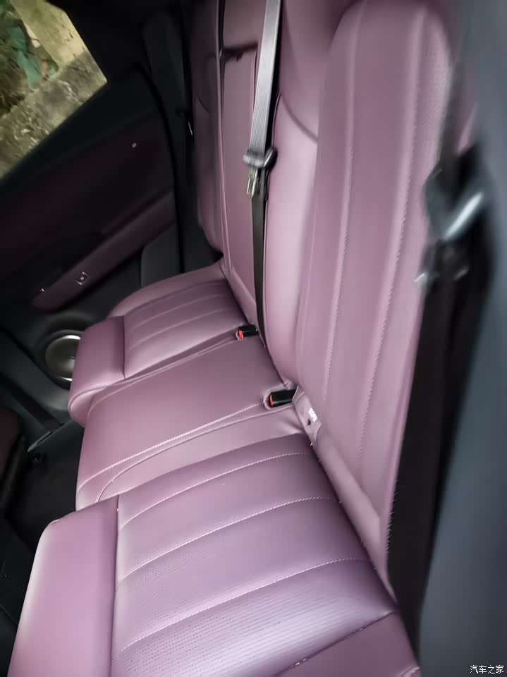 采用与外观相呼应的紫色调,整体呈现出不错的质感,所使用的软包材质颇多,用手触摸时可感受到其细腻且舒适的触感,并且车内并没有刺鼻的异味,刚提车的时候通风几天味道就没有了。紫色内饰看上去很有氛围感,和车内的氛围灯相互搭配,在晚上开车的时候能够感受到满满的质感,其中控布局较为简洁且规整,按键以及屏幕的操作起来也很顺手,细节方面的做工也很扎实,接缝处处理得很整齐,坐进车里就能感到很舒服,完全不给人廉价的感觉。