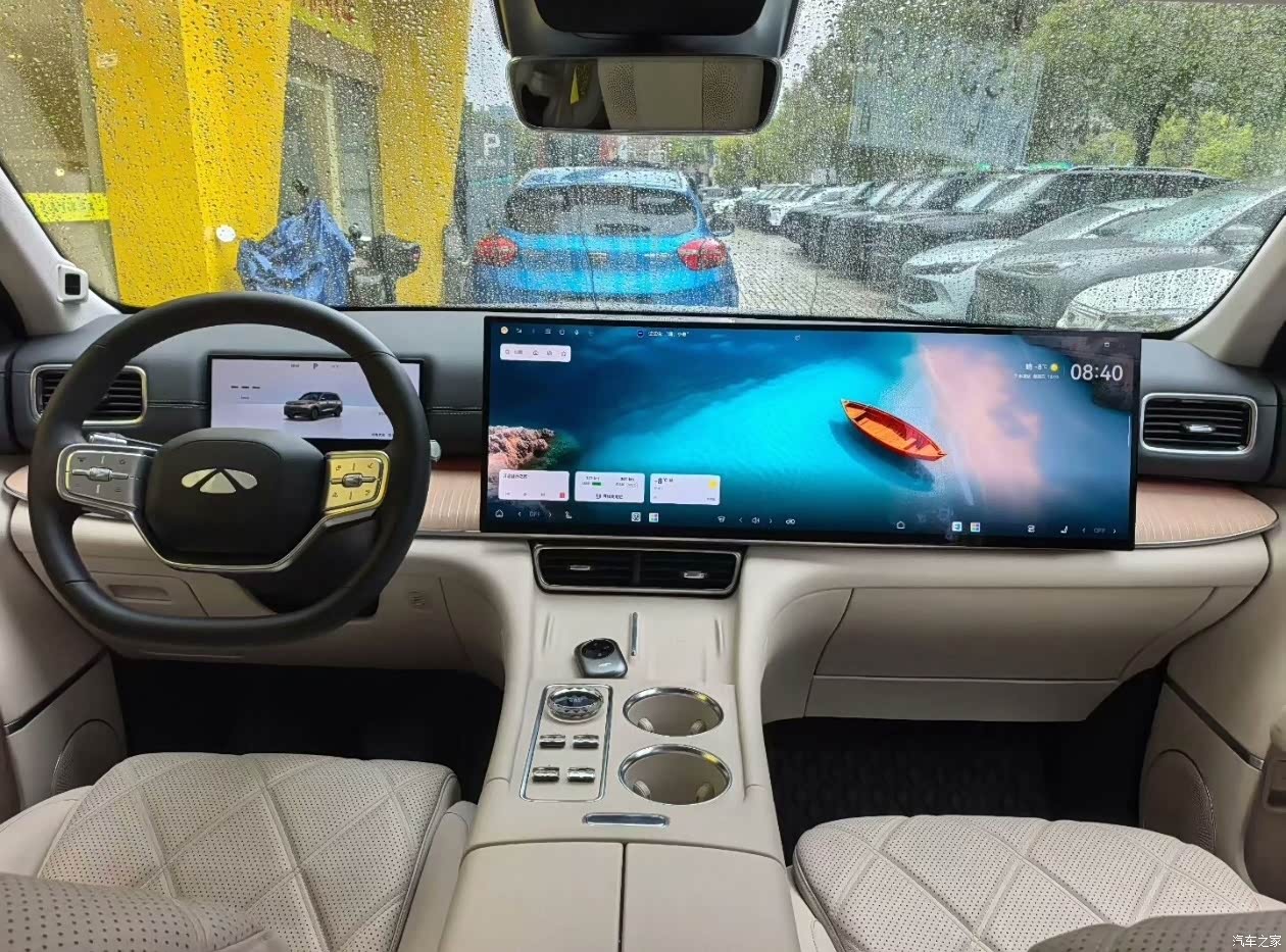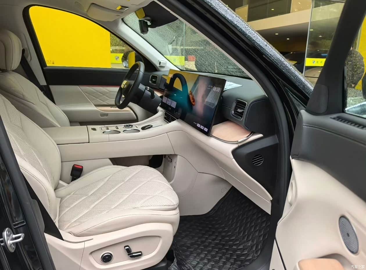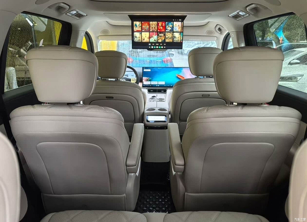 内饰是风云T11四驱全家乐版的亮点之一,整体用料诚意十足。手能触及的区域基本以皮质包裹为主,搭配同色木纹饰板与水晶旋钮,豪华氛围营造到位,契合家庭用车的舒适需求。中控区域配备一体式大联屏。顶配车型的优势十分突出,电动弹出/收回的车载冰箱、车载香氛、美妆镜等细节配置应有尽有,实用性直接拉满。不过内饰也存在明显短板,转向档杆与怀挡挡杆塑料感较重,音响盖等细节做工不够精致。