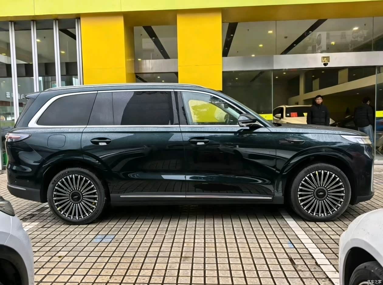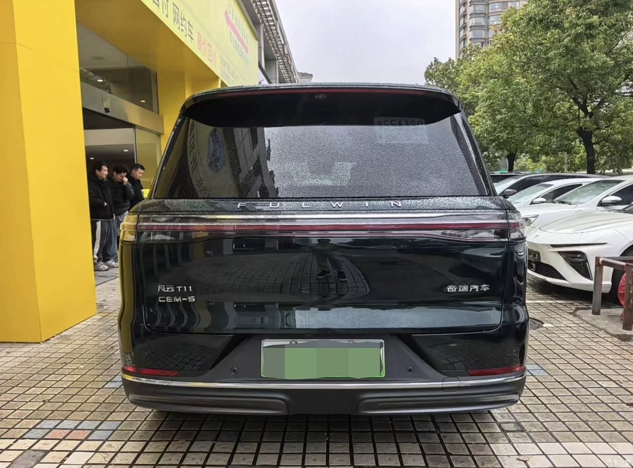 风云T11四驱全家乐版的外观优势在于尺寸带来的气场,前脸采用大尺寸镀铬竖条格栅设计,搭配犀利的LED大灯组,辨识度尚可,但风格偏传统,缺少新能源车型常见的科技感与简洁感。侧身线条平直修长,超5.2米车长搭配21寸多辐式轮毂的静音轮胎,协调性刚刚好。车尾造型厚重饱满,整体视觉感偏向沉稳霸气,符合中大型家用SUV的调性。