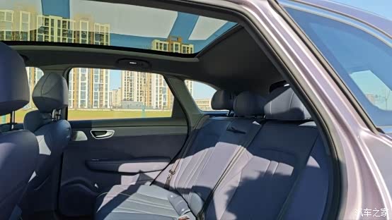 整个车整体的内部空间还是挺宽敞的,毕竟这车的车身长度已经接近4米8了,轴距也有2米8多。所以不管是它的前排乘坐空间还是后排乘坐空间,我腿部都可以自由伸展,收放自如。这车的车身高度也不低,头顶没有觉得压抑,而且车顶还有一个2.3㎡的超大全景天幕,显得车内就会更加宽敞。
