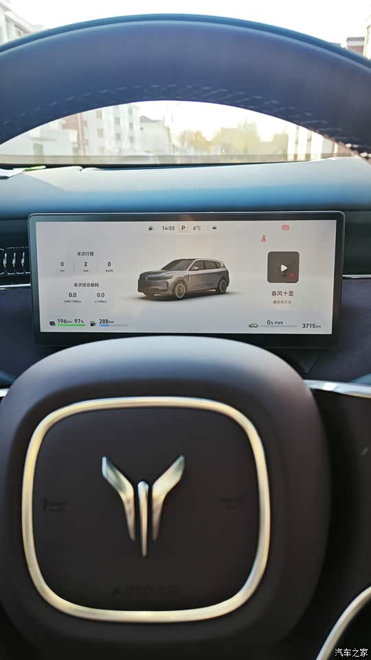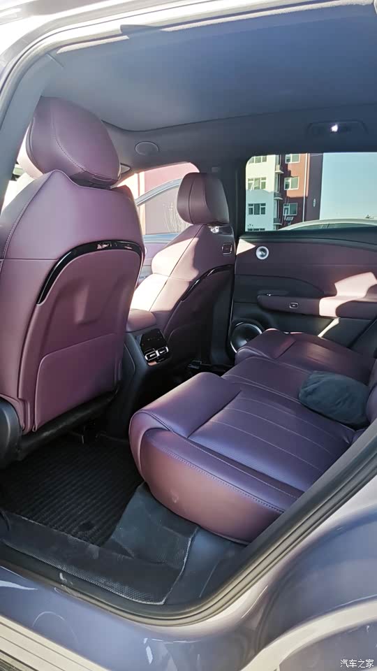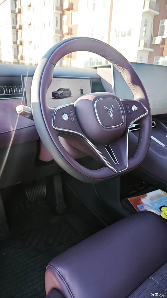 内饰挑了极光紫,跟外观来个对上眼,实车颜色比图片淡,偏灰的紫,铺在中控台和门板的仿麂皮摸着细,点缀的仿生桃木压着气场不浮,晚上开256色氛围灯,调一层淡淡的紫光,和座舱颜色一合,车里气氛就对了,能摸到的地方基本都是软包,做工缝线走得齐,方向盘加热和座椅加热反应很快,冬天上车没多久就暖起来,热起来的速度有点猛,我怕热,跑一会儿就用语音关掉。