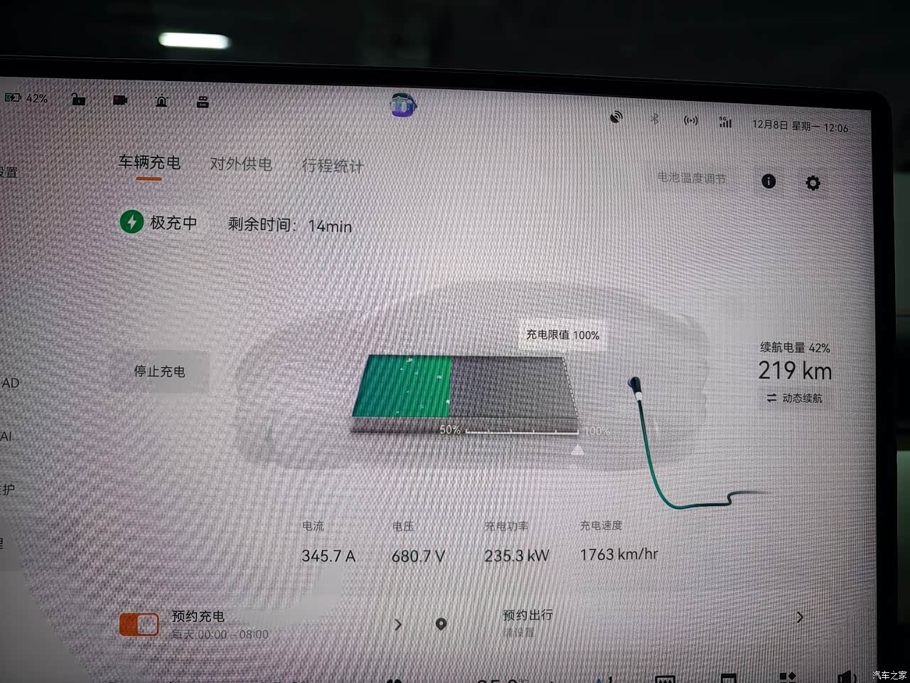 在广东 7-12 月用车,基本上受温度的影响比较小,百公里应该也就 1 度左右的差距。目前城区通勤上下班,大概 25 公里跑 30 分钟,纯通勤能耗能到 12-13 左右,所以极限能跑到 600km,对于这个车重和动力,算得上优秀了。高速基本上 60 % 高速 40 % 快速路,能到 15-16,综合可以跑到 450-500,但是如果纯高速匀速 120-130km/h,应该大概 400 是可以的。 刚刚 12 月尝试了一次极充站,功率 240kw 上下,维持到 80% 开始降功率,20-80 大概用了 13 分钟。