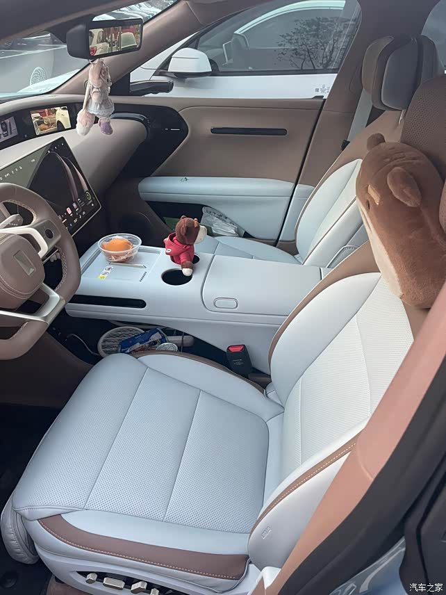 内饰我选的白棕,是有点大胆,毕竟白色不好打理,但和晴蓝很配呀,显得非常高级豪华。我没有额外升级豪华套装,就舒享足够了,座椅通风加热按摩都有,整体是很精致的。 而且氛围灯简直拉满情绪价值,白天能给一天的好心情,晚上能扫除了一天的疲惫,很不错的设计。