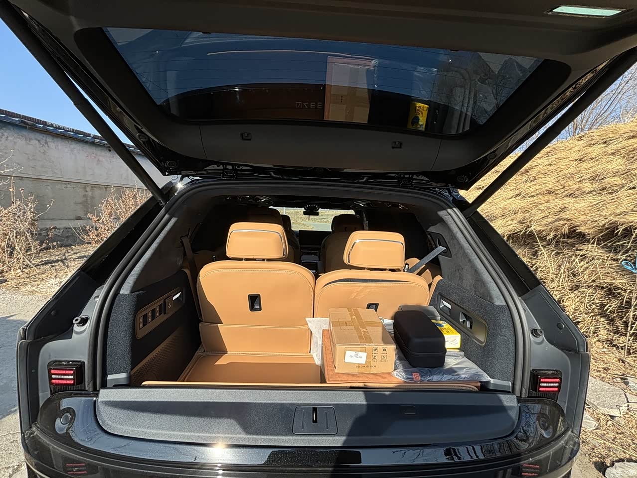 我买的是极氪9X Ultra 55kWh版本,用车快2000公里啦,今天来交个作业。 外观大气、车身尺寸大很霸气,全黑外观很有商务感,上周带客户去机场接机,客户刚看到车就说你这车看着就不简单。 车内空间很大,而且布局灵活多变,周末去周边露营二排调成全躺模式。 后备箱可以和第三排连通放露营装备,后备箱是天地门设计上下物品都很方便。 座椅按摩很好用,老婆每次坐车,都要去第二排都使用按摩功能,说比外面SPA还舒服。