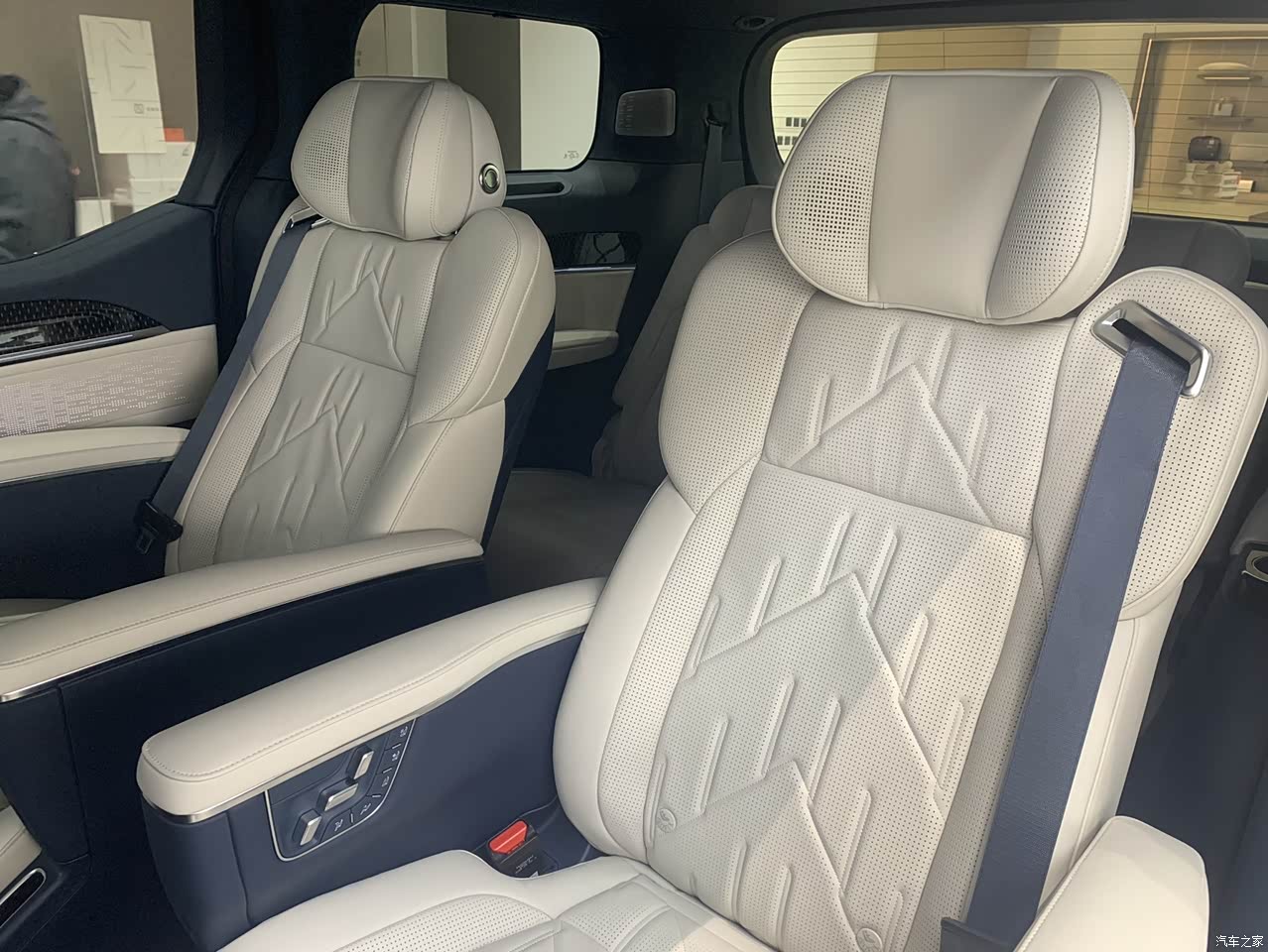整车座椅采用航空椅的设计,欧姆斯的真皮质地,电动调节,加热,按摩一应俱全,质感顶级!最让人惊喜的是还提供了第二排老板椅的设计,可一键放倒至近乎平躺的姿态,配合腿托,形成完美的“躺平”姿态,在加上中间的电子大屏,真是妥妥的享受啊!第三排的空间也非常合理,座椅的高度,调整,几乎与第二排平齐,就算是成年人也能获得非常舒服的坐姿,腿部空间宽裕,头部空间也不压抑。中央通道宽度足够,成年人都能从容的通过,非常便利!