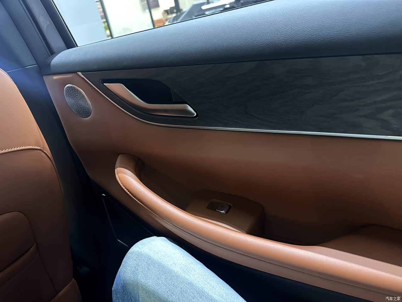内饰设计非常符合当下新能源车辆的主流。简洁实用,另外,车内用料大部分都用了皮革包裹。缝线工艺也很规整。并且新车没有异味这点很值得夸赞,用的都是好东西