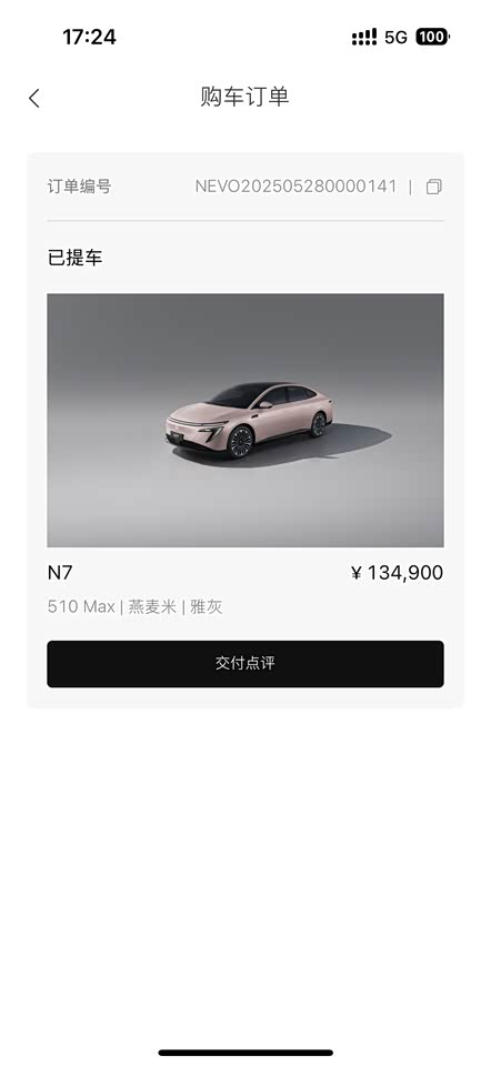 费用方面,我选的是顶配510ax版本,5月28号支付了5000元订金,尾款支付12.99万,裸车下来一共13.99万,燕麦米限时免费,而且媳妇也特别喜欢粉色,所以选择了燕麦米颜色,内饰搭配是雅灰色系。赠送了灯语科技包、副驾驶AI座椅、冷暖可调冰箱,因为家里还有一个同样品牌的车,所以的置换渠道,当地补贴5000,最后价格是13.49万,这里要吐槽一下交车进度,属实有些慢,最开始换车的新鲜感都快消耗没了,历时一个多月,终于在7月24就到店了,车到店后等到周末我才去提的车。