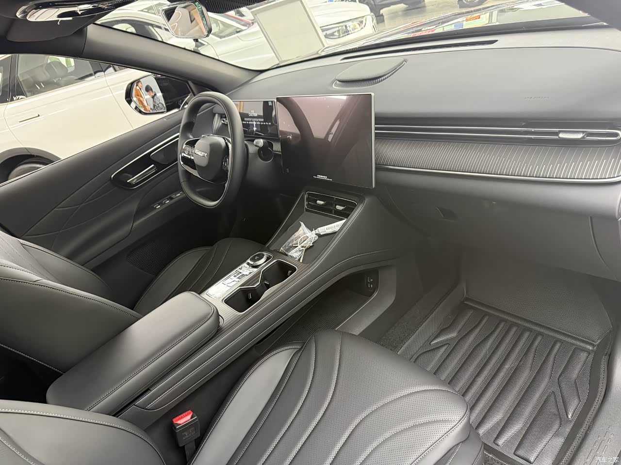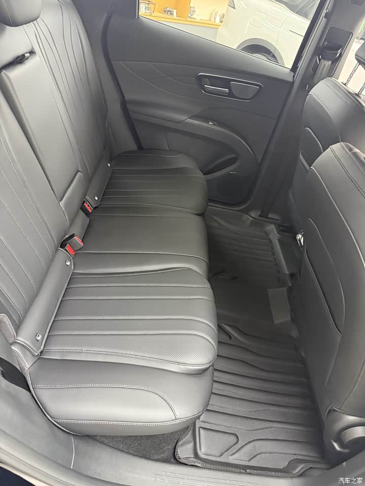 坐进车内,虎款豪华版的内饰质感完全超出预期,兼顾了舒适与实用,车内采用纯黑色,大量软性材质包裹中控台,触感细腻,搭配精致的缝线工艺,有效提升了座舱的高级感。核心亮点是15.6英寸横置悬浮高清中控屏+10.25英寸全液晶仪表的双屏组合,屏幕显示清晰,操作流畅度出色。主驾支持电动调节,长时间驾驶也不会觉得疲惫。后排地板纯平设计是家庭用户的福音,中间乘客腿部空间无压迫,再加上后排独立出风口,舒适性直接拉满。美中不足的是仿皮座椅夏季略易闷汗,建议搭配透气座套使用 。
