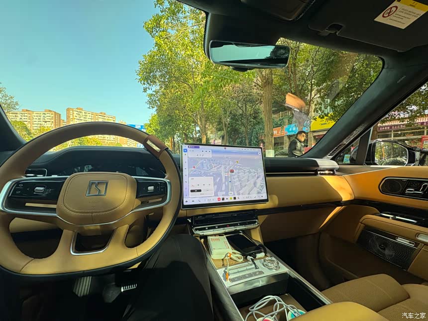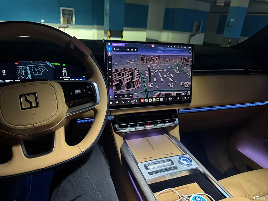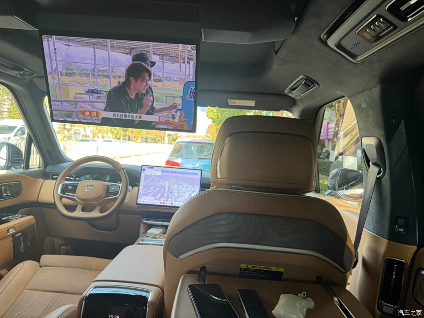 极氪9X的智能化表现完全跟上了时代步伐,双8295芯片、智舱反应速度快,天翼屏科技感强,无级滑移前后调节,画面又艳丽,非常好。AR-HUD抬头显示也非常好用,白天看着也很清楚,上面的显示导航、车速等信息很实用。