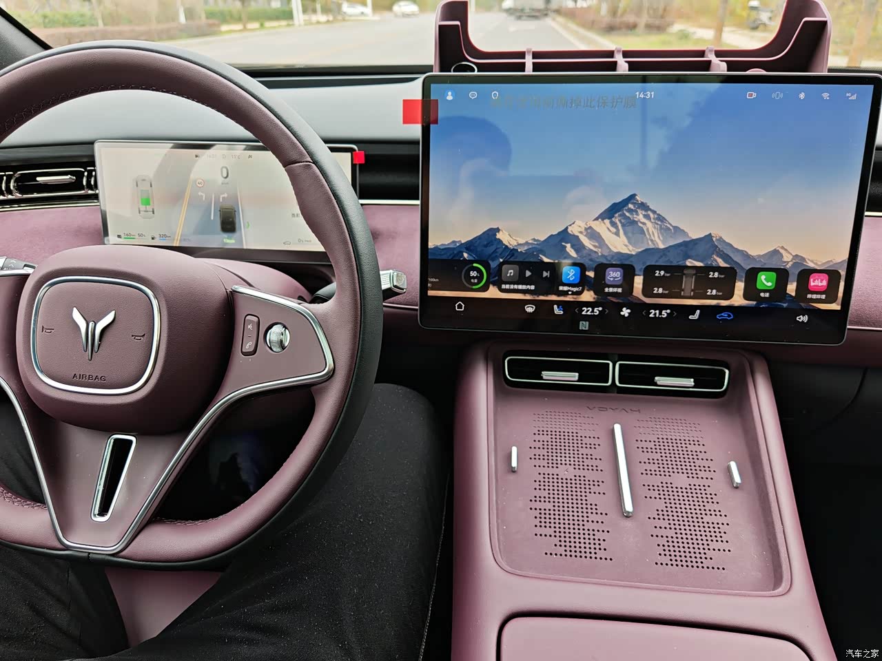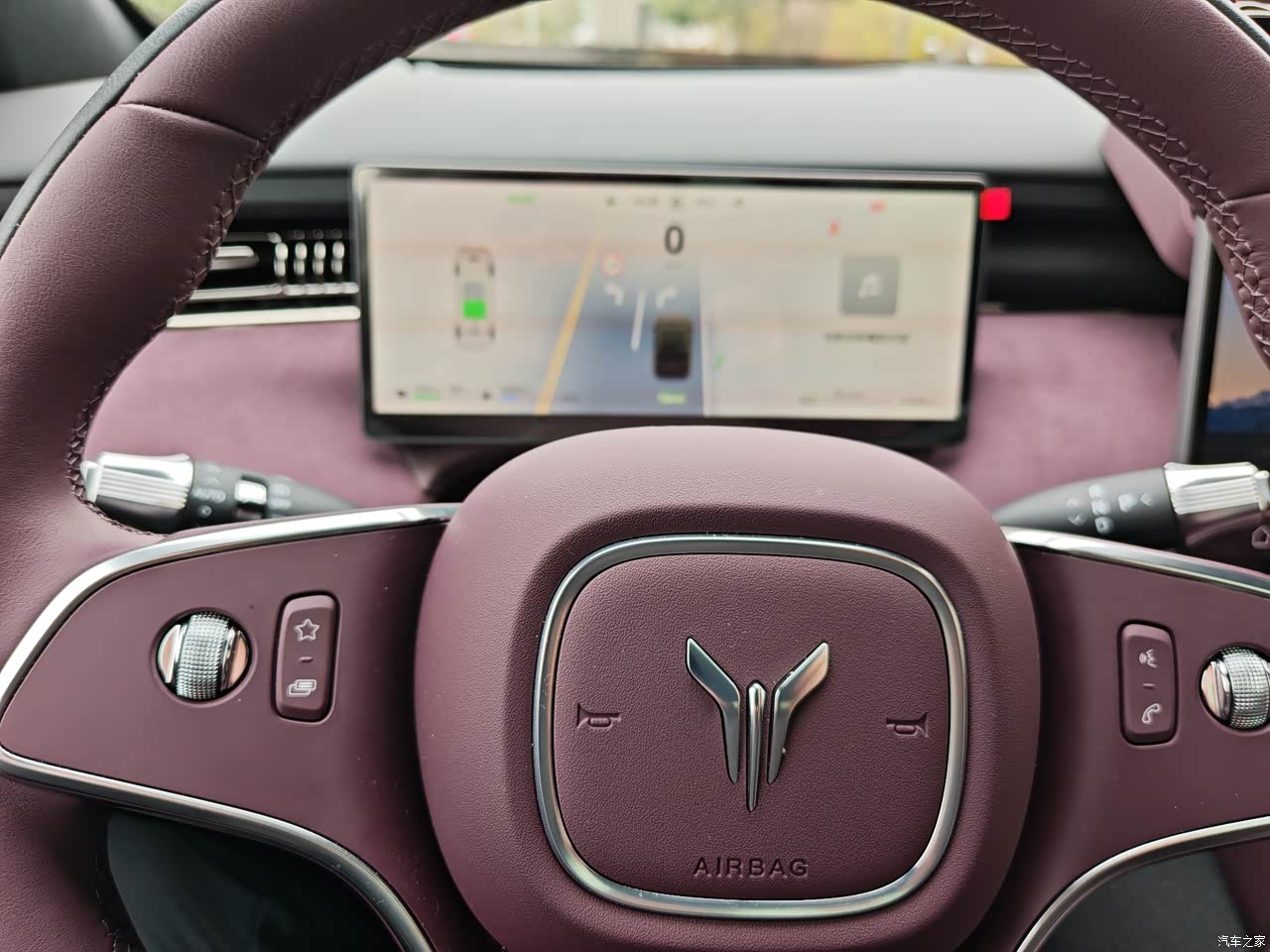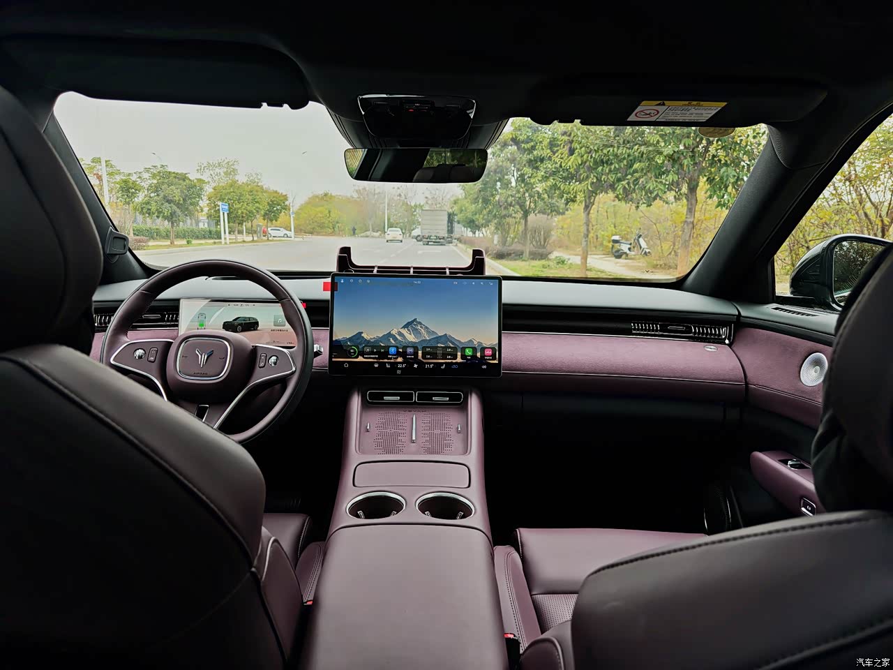 所选用的紫色着实令人感到惊喜,并非那种俗气的紫色调,其色调显得颇为柔和且高级,当你坐进车内的那一刻,氛围感便瞬间得以充盈。内饰多采用软包材质,用手去触摸时,能够感受到其细腻舒适的质地,车内并没有刺鼻的异味存在,新车提回来之后晾上几天,味道便消散殆尽了,从做工来看,其十分扎实,缝隙处理得也相当均匀,在细节之处能够清楚地看出是经过精心雕琢的。中控大屏以及仪表盘的显示效果十分清晰,操作起来也极为顺手,紫色内饰与黑色车身相互搭配,形成内外的呼应,质感瞬间得以提升,让人一坐进去便觉得心情舒畅