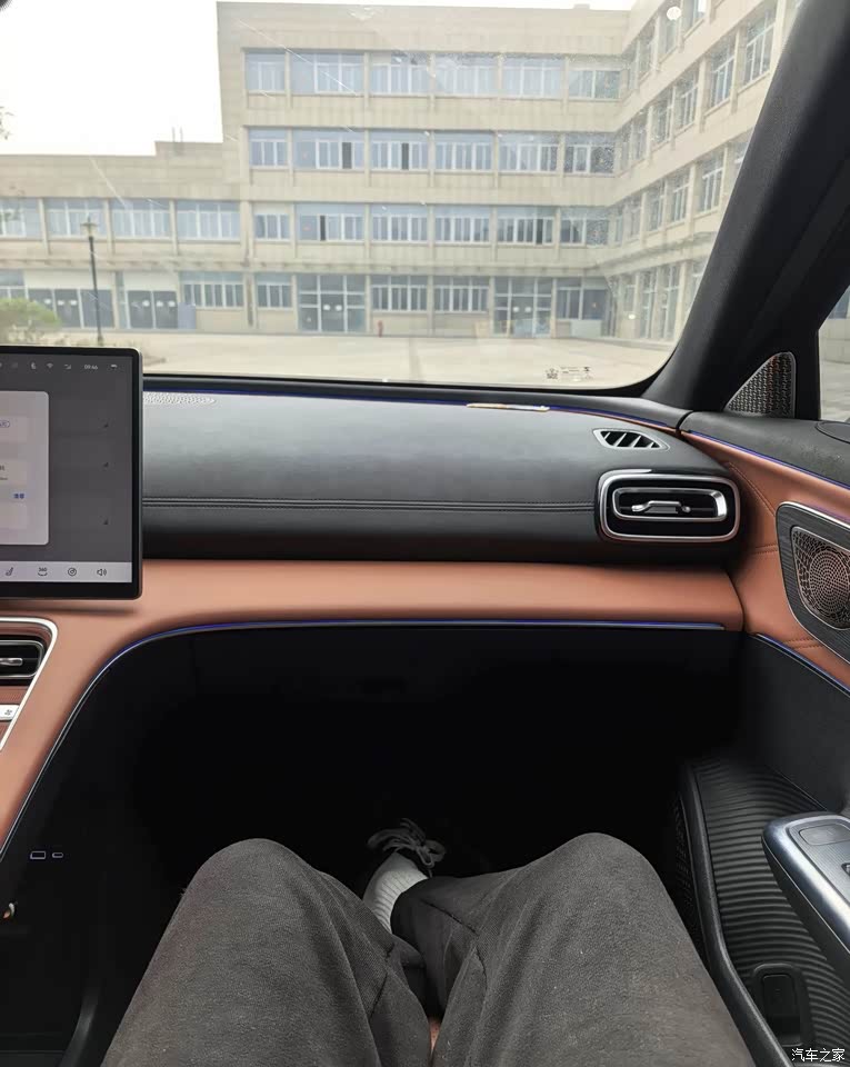 车内空间是这个车的亮点,5米车身3米轴距,带来的就是非常夸张的空间感,首先我身高178,前排座椅调整舒适以后,后排还能轻轻松松翘二郎腿,而且后排地台纯平,这一点非常好,美中不足的就是后排中间座椅太短,乘坐舒适度不高。