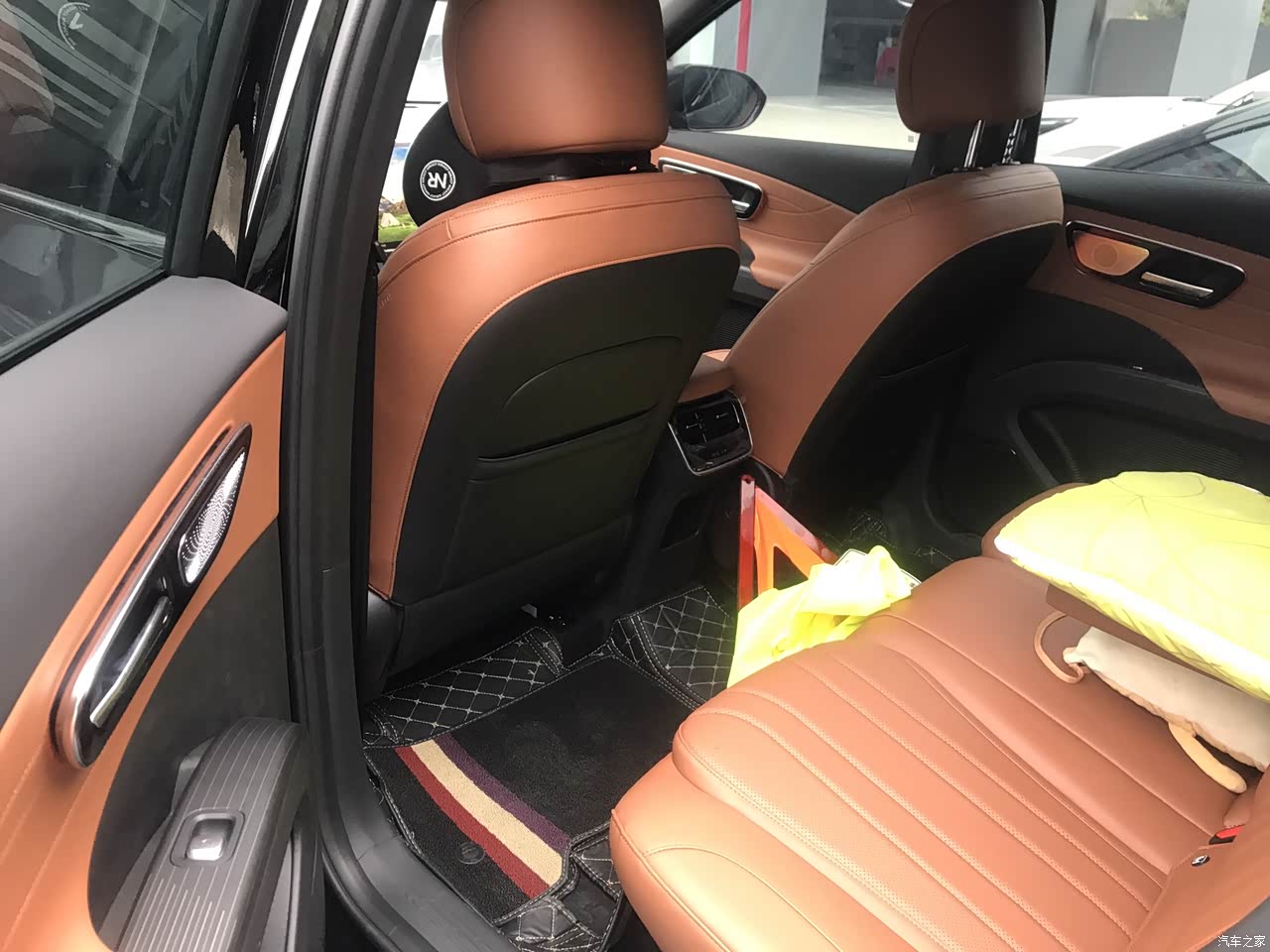内饰基本都是软的,棕色内饰也不错,就是娃娃小容易弄脏,要备一根毛巾。然后再说下车顶是黑色的设计不错,比之前的车米色的要舒服。大屏幕配合中控台不错,里面内容也丰富,娃娃看动画片可以,在车上不乱跳
