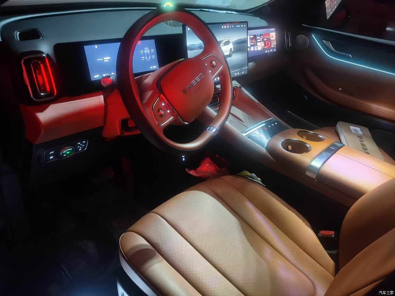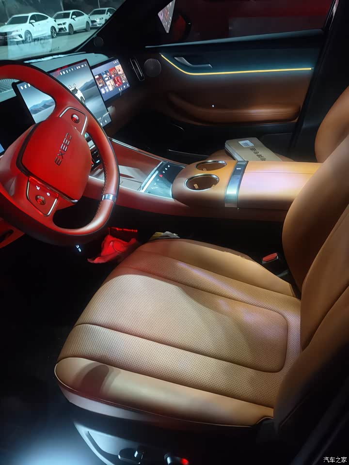 外观沉稳大气,贝壳形大灯和贯穿式尾灯很有辨识度。我选的橙色内饰充满活力,搭配木纹饰板,质感出色。