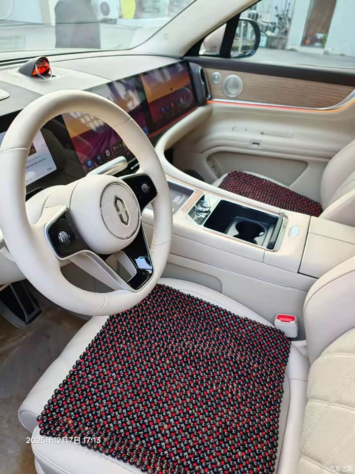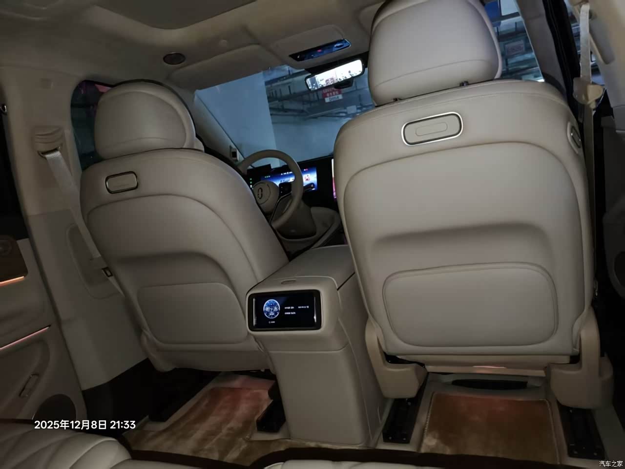 车内的设计很不错,整体设计沉稳大气,该有的配置都有,真皮的座椅材质,上面标配上了加热/按摩/通风功能,不管是天冷还是热,坐着舒适性都很好。我还给车上选装了零重力座椅,配上投影幕布,不仅可以看电影,打开暮夜空间以后,车内的遮阳帘、灯光等会关闭,车窗会变暗,投影幕布也会落下,这个时候躺上面小憩一下很舒服。