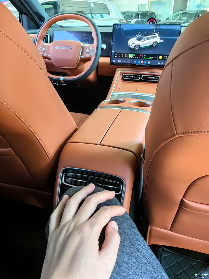 内饰颜色是橙色,做工还行,人造皮,不是真皮,车内没啥异味,内饰还算可以,不过乘坐的舒适度还算可以,皮子有些生硬,空调制冷制热倒是挺快的,出风口设计的也比较精致。