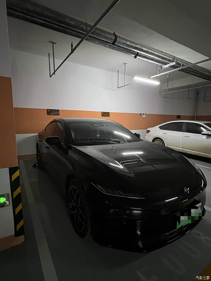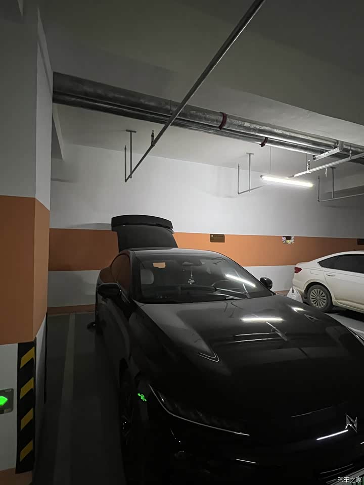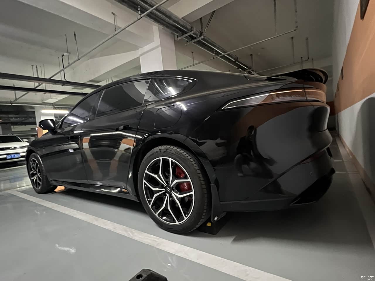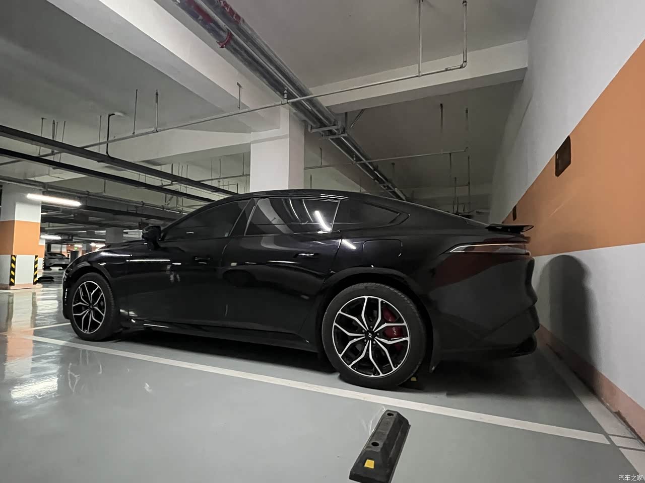 最满意的还得是那股低趴的轿跑味儿,第一次进店那么多车一排摆着眼睛就钩住在它身上,脚下像被粘住,夜影黑这个色听名儿就带劲,真车看着不是死黑,漆面里像撒了很细的亮点,太阳一照层次往外冒,通透,销售嘴里高透清漆工艺光泽度说比普通漆高四成,具体啥意思不研究,看着顺眼,黑色不耐脏这点心里有数,落灰显得清清楚楚,周末手痒把车开去冲一冲,就想把那股整车的稳重气质一直维住。车身的姿态一张开就能看出来,接近四米九的长度,两米九多的轴距,中大型的个头,宽体低趴那种摁住的感觉,侧面从B柱往后溜背线直接压下去,干净,门把手藏着,人靠近弹出一声很脆,无框车门一拉科技味儿和运动味儿就起来,地库取车还没走到车跟前钥匙一按地上的蝶影光毯铺开一片,脚步顺着光走过去,一天的工作收一收,像是这车在把人接回家。