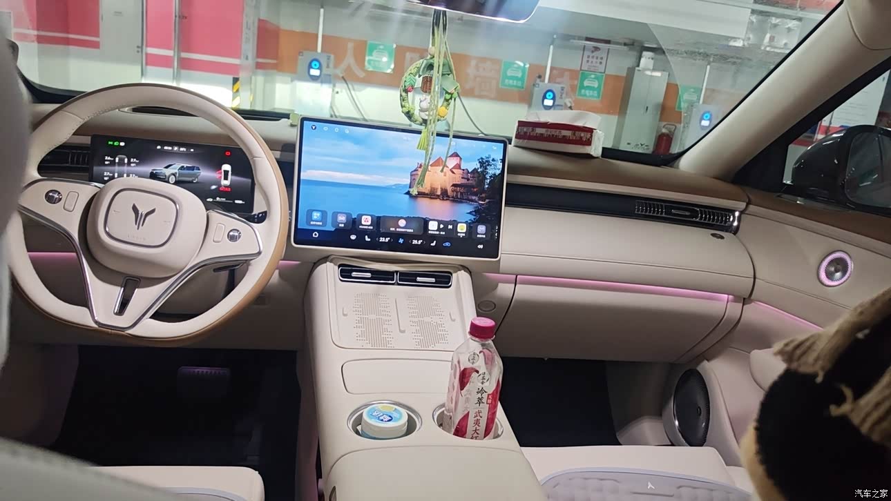 内饰选的是琥珀棕,我也看过很火的极光紫最后还是倾向更耐看的棕色调,座舱设计叫浮光岛屿手能触到的地方中控与门板用了大面积软质仿麂皮触感细腻没有硬塑的粗糙感,中间嵌一块仿生金丝白桃木饰板纹理自然把层次拉起,中间的15 点6英寸2K悬浮屏跑的是鸿蒙座舱HarmonySpace5,操作的流畅度与滑动的跟手感在日常应用里表现稳定,导航音乐这些常用页面布局清楚,空调这类高频控制保留实体按键与旋钮行驶中盲操作更稳更安全,语音助手小岚支持连续对话我说打开空调调到23度风量到2档它能一次理解并执行,前方有29 英寸的ARHUD把车速导航箭头和智驾信息直接投到风挡上眼睛不离开路面也能看到关键提示。