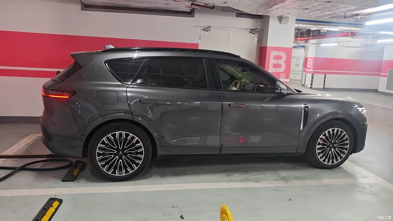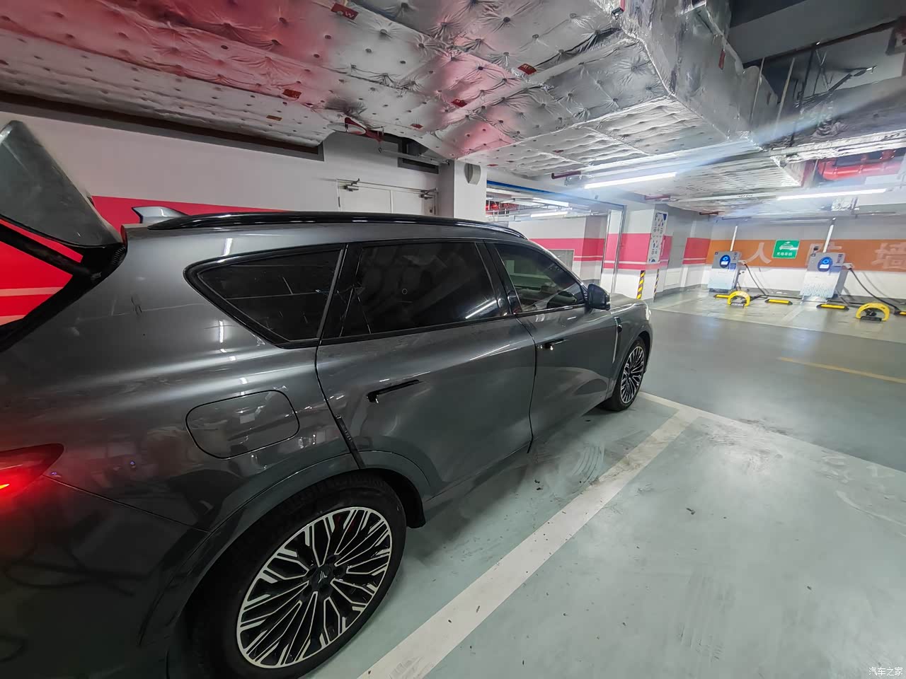 驾驶层面给到的是又快又稳这四个字,双电机四驱总功率350千瓦官方零百4点9秒,电门响应直接城市里红绿灯前稍微深一点车就起势, 高速上并线与超车动力随叫随到不会拖着,底盘是前双叉臂后多连杆的全铝结构配EDC可变魔毯减震与100毫米可调空气悬架,过减速带或者遇到坑洼时那种沉闷干脆的反馈很清楚车身没有多余摆动,跑高速空气悬架降低车身贴地感更强风阻更小,遇到烂路把模式切到越野底盘升高通过性上来,舒适与操控之间的平衡点把握得准家人坐着不晕我一个人开时过弯也有支撑与驾驶乐趣,转向低速轻高速沉指向准确这台接近五米的车开起来不显笨。