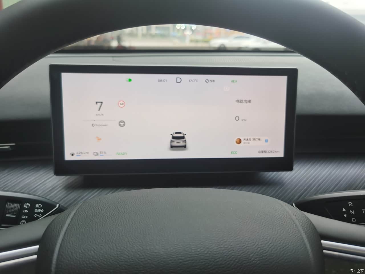 驾驶起来很轻快,开起来在没有发动机响声的时候很丝滑!底盘调教得比较适中,不软不硬,后排坐着也比较舒服!不像纯电车后排的人像晕船。