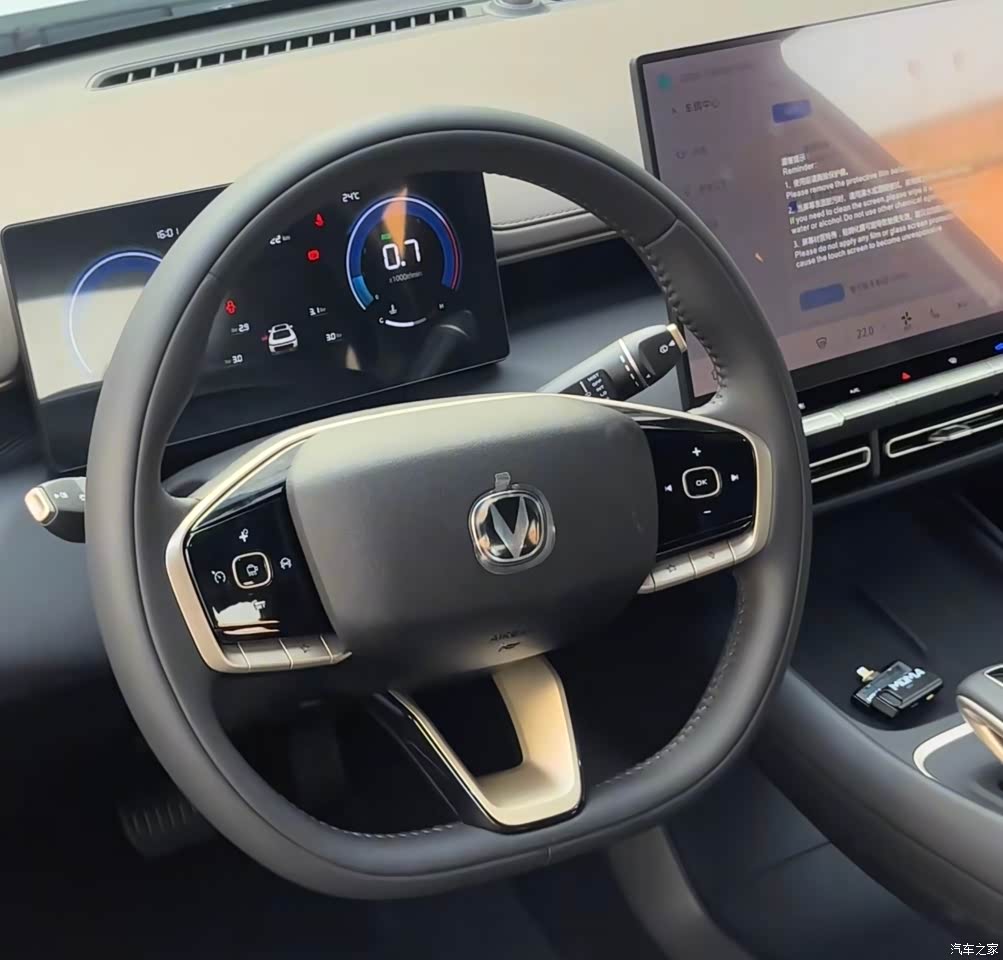 座舱是当下流行的简约科技风,双联屏是亮点。虽然用料硬塑料居多,但做工扎实,没有廉价松垮感。实体空调按键得到保留,必须给好评!开车时盲操很方便。整体氛围营造得挺年轻,设计感比老款提升了一大截。