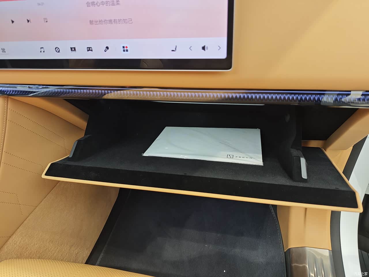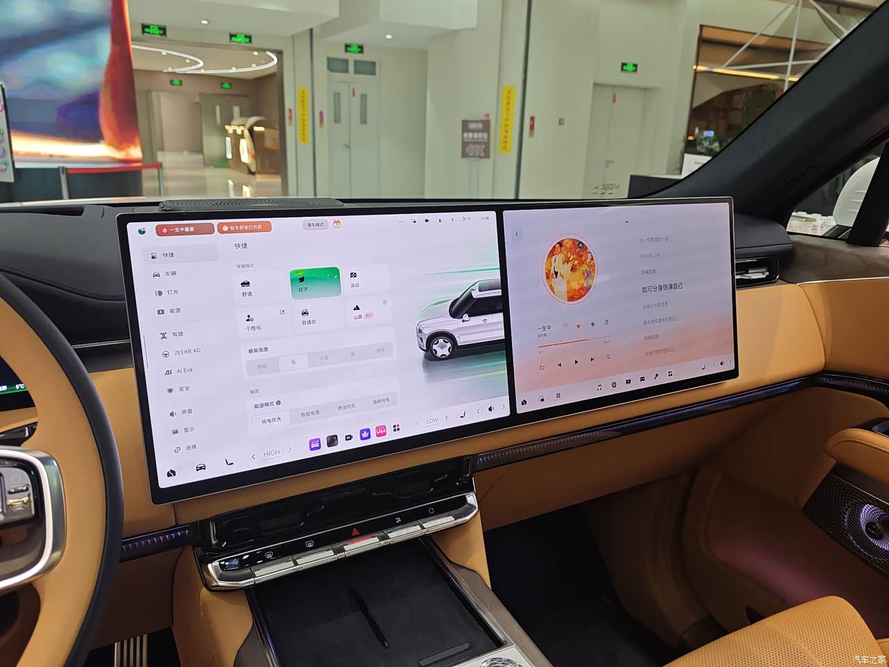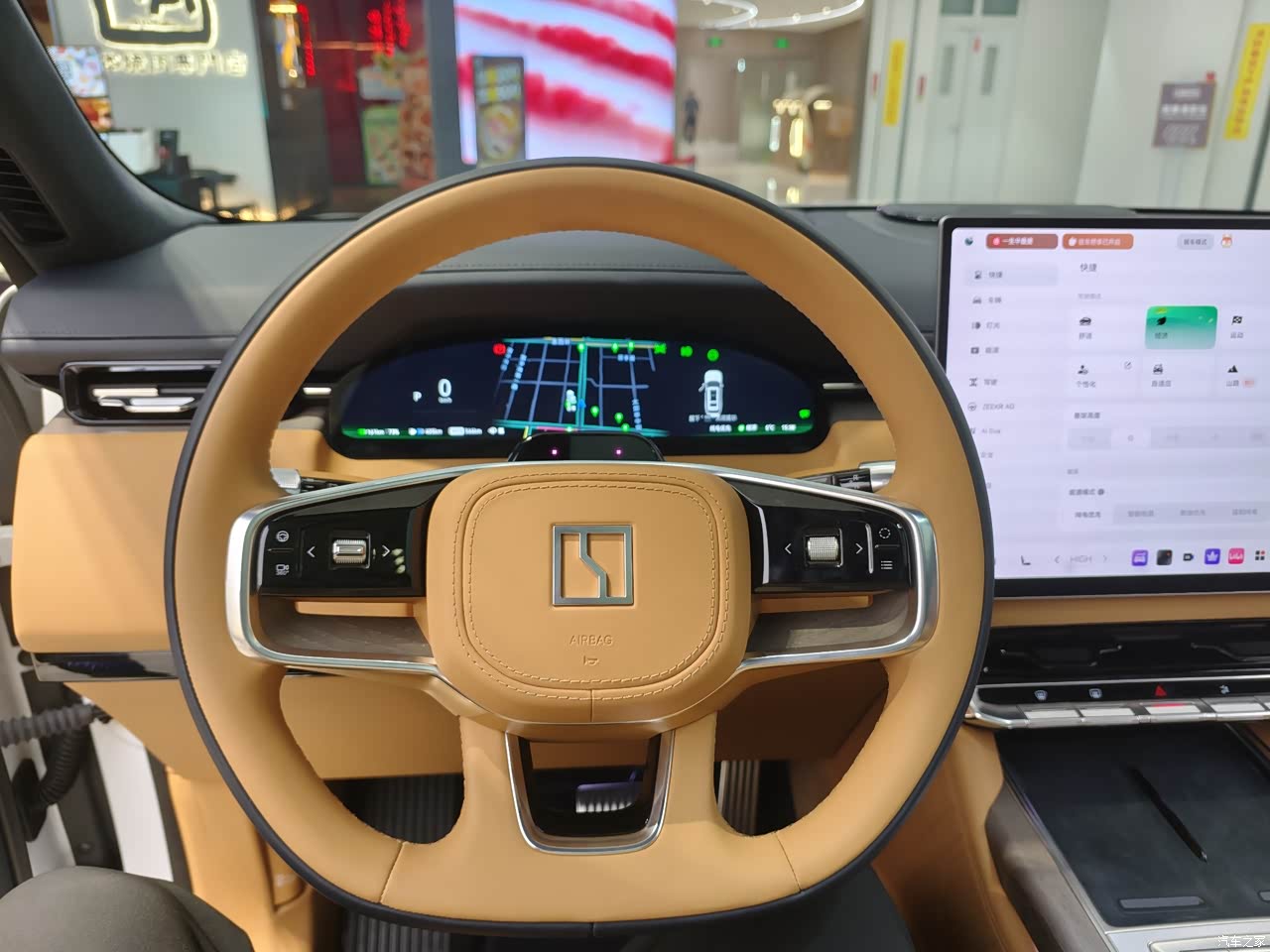 内饰豪华感足,Soft Nappa 顶级全粒面真皮包裹的座椅触感细腻饱满,用手按压能感受到明显的弹性。北欧天然原木饰板搭配精致缝线,质感完全不输豪华品牌,关键是车内几乎没有异味,非常环保,好车就是要用好材料。中控台两块大屏看起来很有科技感,而且观感非常好,色彩艳丽,一眼就看的出是高级货。车顶屏飞翼屏,是折叠隐藏设计,由一个滑轨驱动,还可以远近调节,角度调节,我敢说这个配置如果出现在进口车上肯定要加价好几万,国产车的创新能力也蛮厉害的。