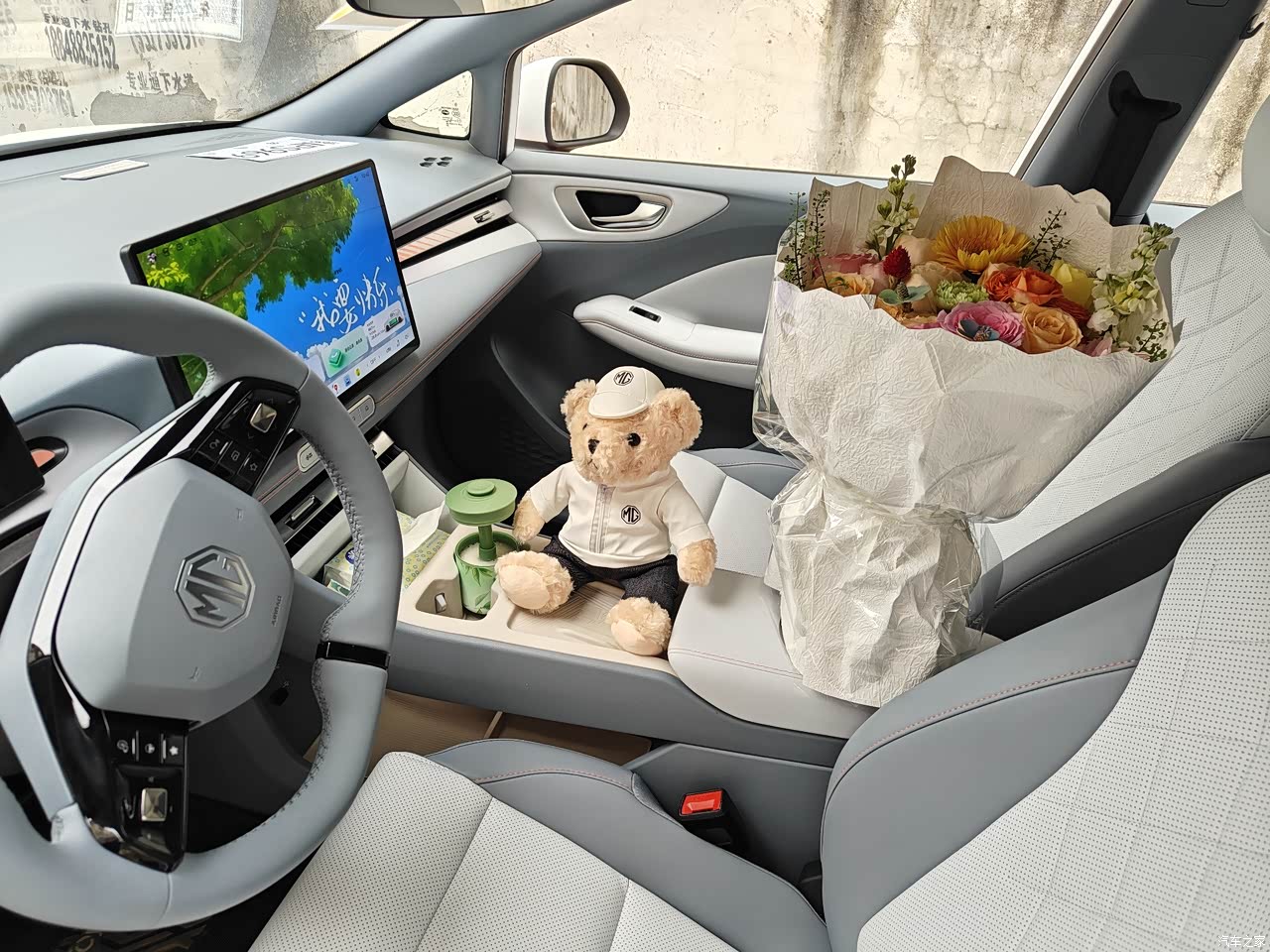 作为人生的第一辆车,MG4给我远超同级的感受跟驾驶体验,动力遥遥领先同级别其他车型。 因为看到好多人选了紫外紫内,想要点不同的,所以我选的是白色外观岱山蓝内饰,实车真的超级好看。 从9月29日下定到11月17日到店,我的心从订车的欢喜到等车的煎熬,再到提车的激动,事实证明值得等待。 车真的是好车,因为之前没开过车,选配置没有纠结直接选择的智趣版,智驾确实好用。当然也有一些缺点,比如车机导航是百度,不太习惯,等车周期长,但是相信我,绝对值得等待! 从11月21日提车到现在开了已经1月左右了,上班到公司基本在15公里左右,每次提取都是嗷嗷的,上班前洗脸时候就可以在手机上把空调、方向盘加热、座椅加热都打开,现在早上零下的天气也感受不到太多冷气。 没买车之前都是骑着小电驴去上班,冬天人都快冻傻了,以后再也不用怕风吹雨打了! 有车以后想去哪儿就去哪儿,