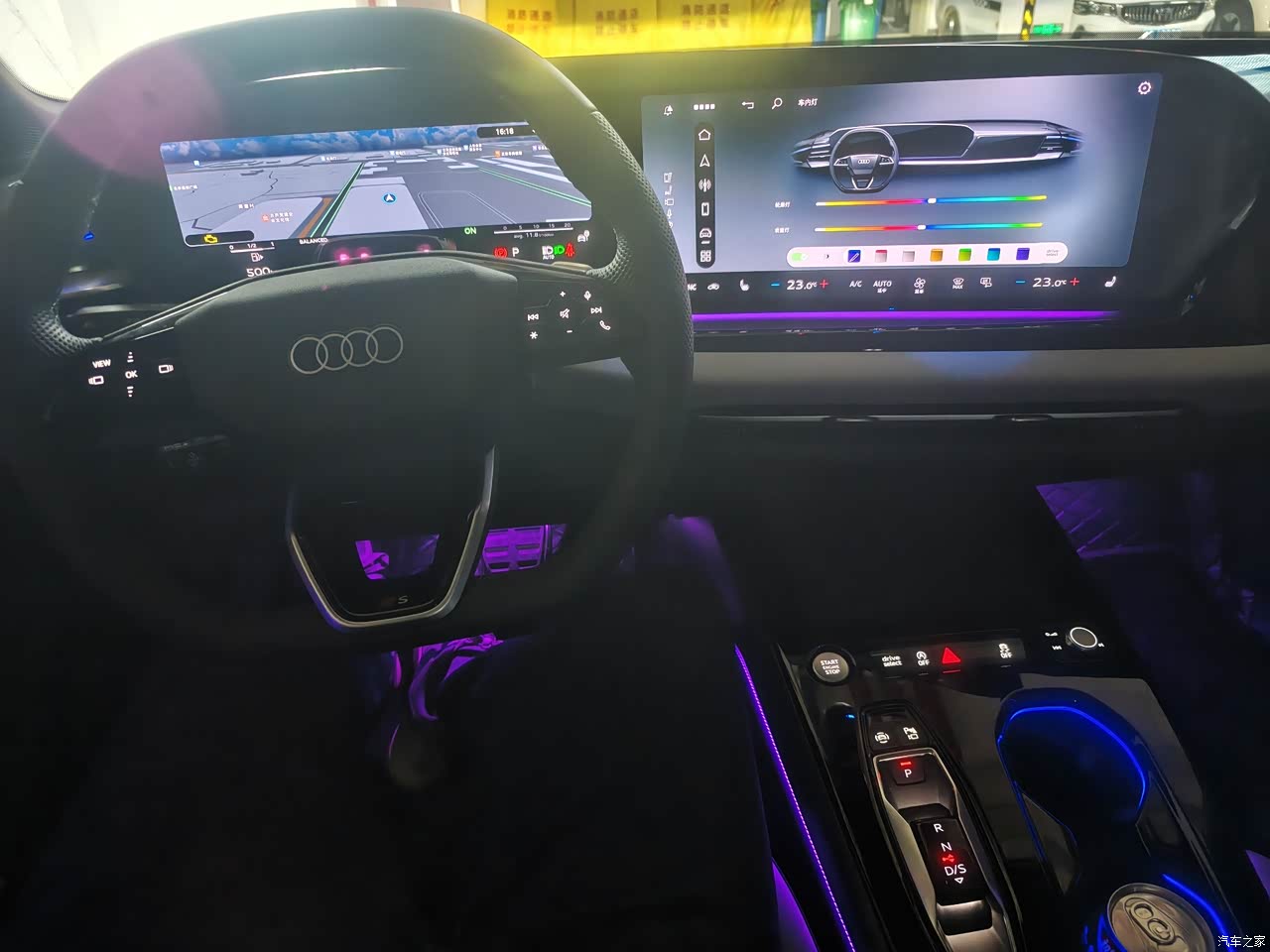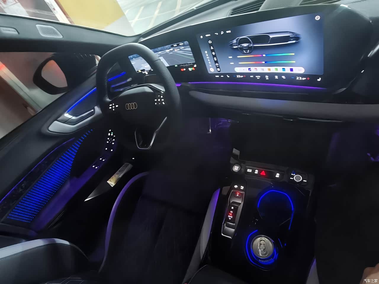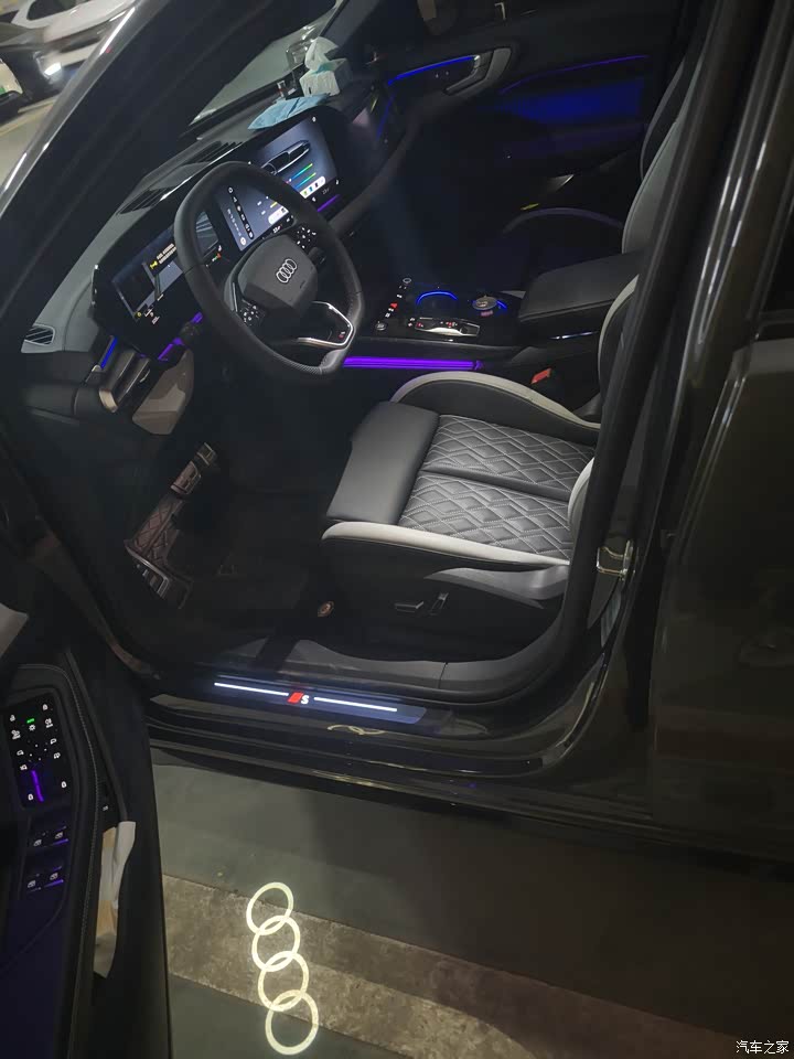 精致与科技感并存 坐进车内,奥迪的内饰做工依旧在线。中控台软质搪塑材质搭配金属饰条,缝线工艺细腻,触手可及处都是软性材质,档次感拉满。一体式运动座椅包裹性好,软硬适中,长时间开车也不觉得累,座椅加热功能在秋冬季节格外实用。氛围灯有30多种颜色可选,晚上开车调上喜欢的色调,车内氛围立马变得不一样。隔音效果也超出预期,高速行驶时胎噪和风噪控制得不错,关上车门就能拥有安静的驾乘空间。