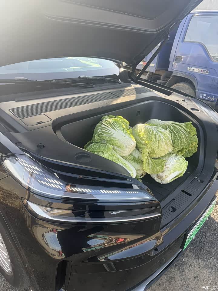 空间可以说L90最大的卖点了,六人十箱无压力可不是随便说说的,无论是乘坐空间还是装载空间都可以说是同级里最大。这是回老家老妈让帮着拉大白菜😅对于这个尺寸能做出这么大的空间还是要佩服蔚来的自研能力的,李斌说现在领先友商几个月还是有点谦虚了。