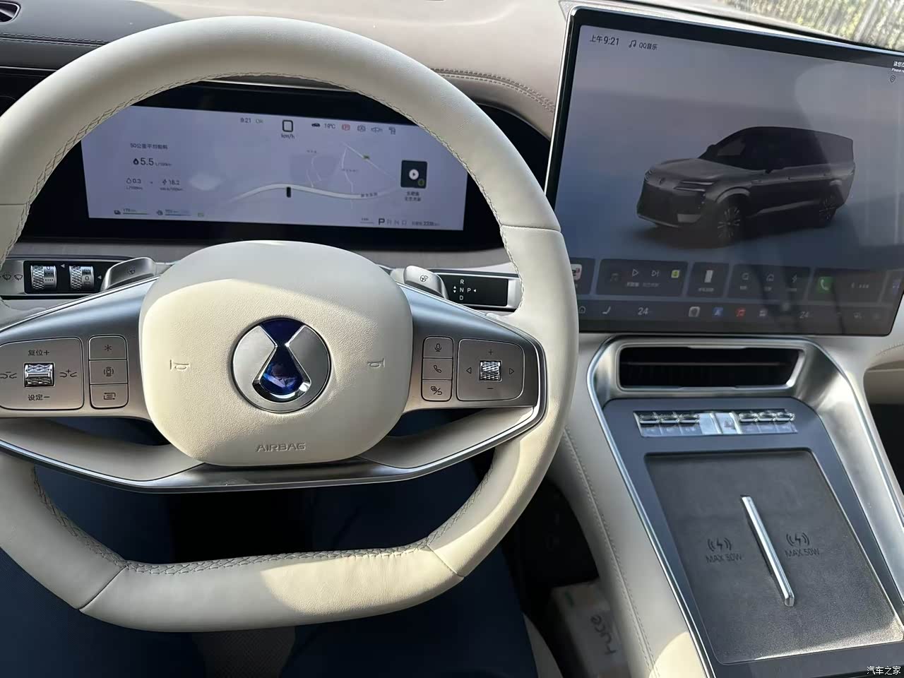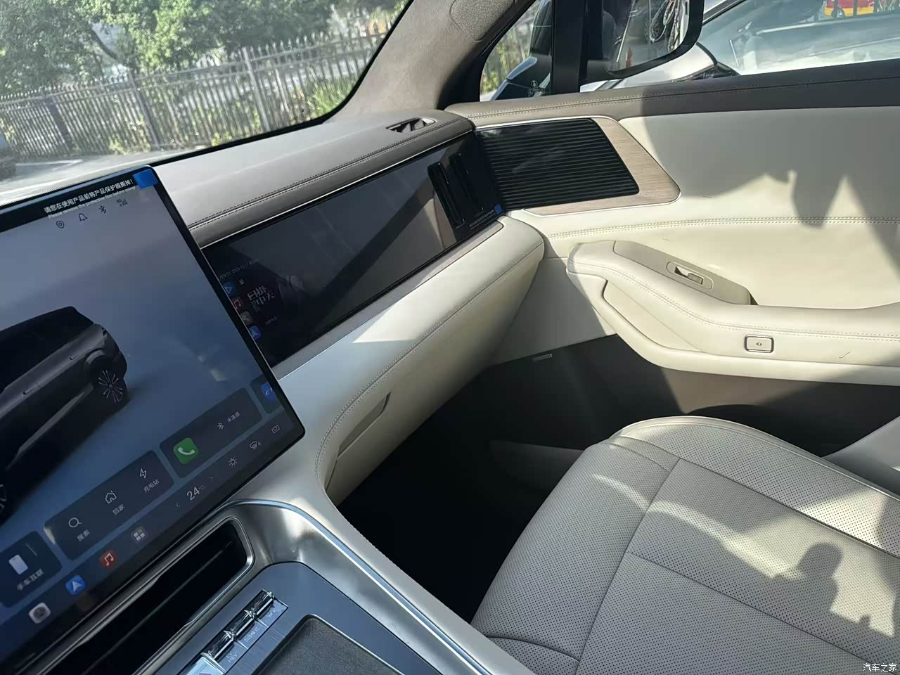 内饰这块豪华,可以说比豪华品牌都要好一点。门板的皮质摸起来比我在店里看的奔驰GLC还要豪华点,当然奔驰的内饰我也很喜欢,这块设计不如奔驰,中控大屏显示效果细腻流畅,也支持语音的指令。