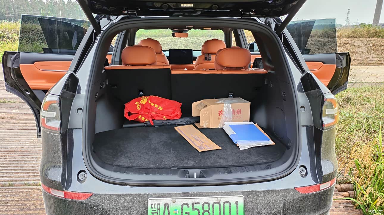 身高1.76m,坐在前排调好位置后,后排腿部空间有个三到四拳,空间非常充裕。后备箱容积大且规整,后排座椅放倒后可形成近乎纯平的巨大空间,装载能力出色,能满足家庭出行、露营等多样化需求。