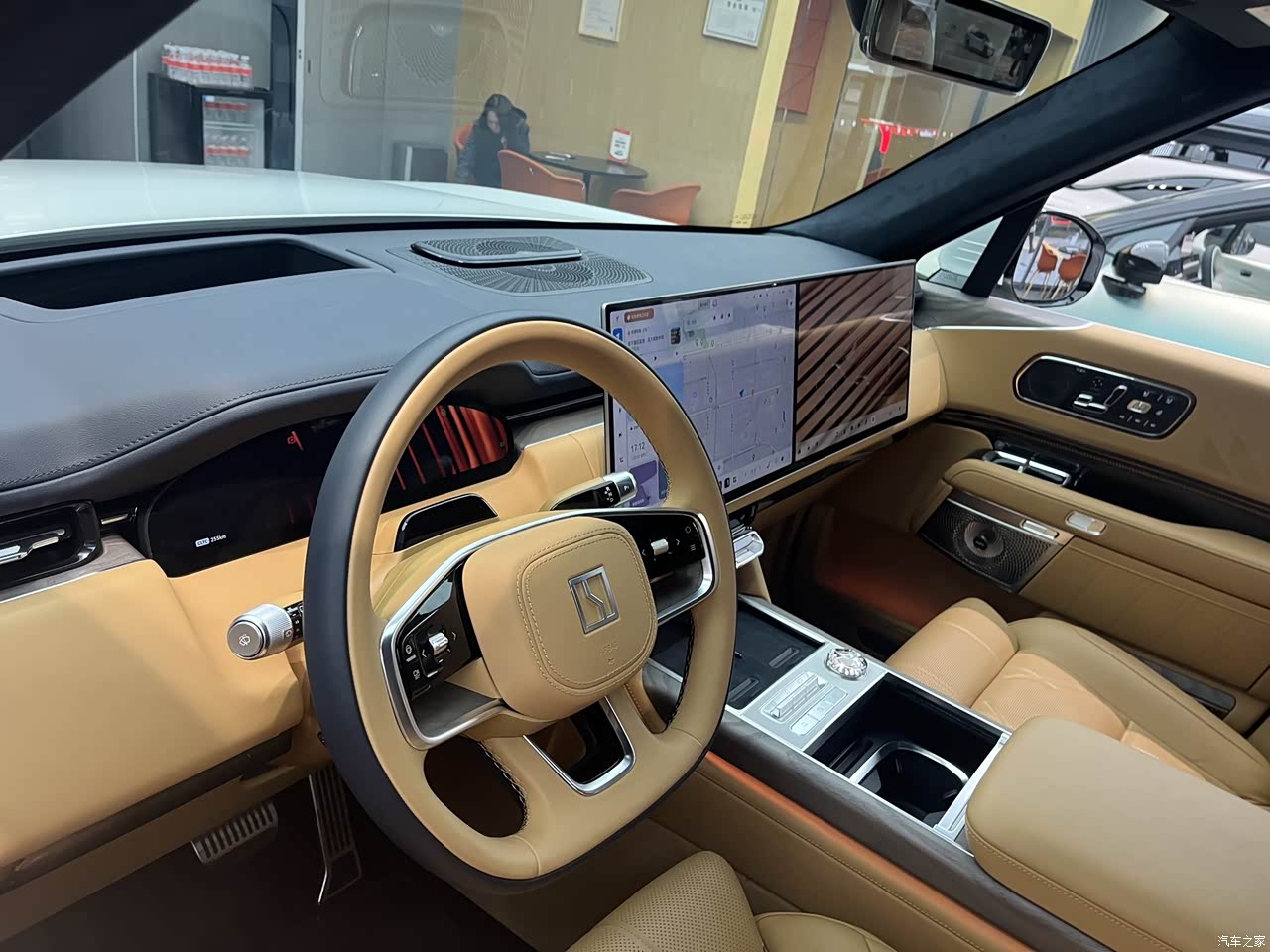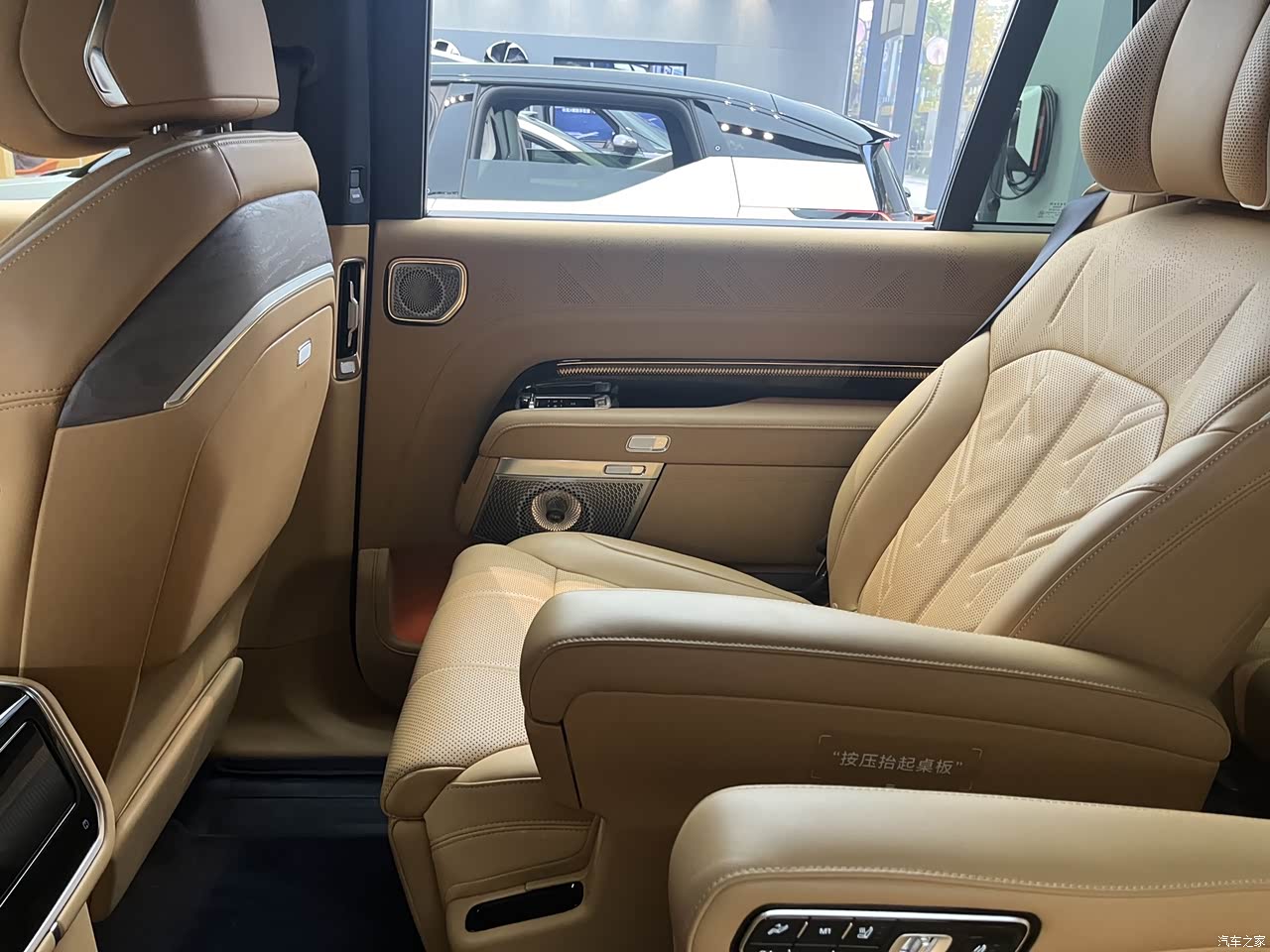 虽是新能源车但沿用油车的操控模式,又加入了一些新元素,怀挡设计搭配超大尺寸 HUD + 中控车机的组合,上手零难度,一体感比较强,从操作习惯来说,就不会陌生,导航信息投在 HUD 上,试驾时轻轻松松游刃有余。 外观造型大气、车头气场很强有点库里南的味道,又有那种不怒自威的既视感。 车内空间非常大,六座布局下每个座位都不委屈,尤其是第二排的灵活度和第三排的实用性,完全颠覆了我对中大型SUV的认知,出行再也不用上演 座位争夺战。 科技配置很高,双 8295 芯片加持下的车机反应神速,再加上可移动飞翼屏和可取出的妙控屏。