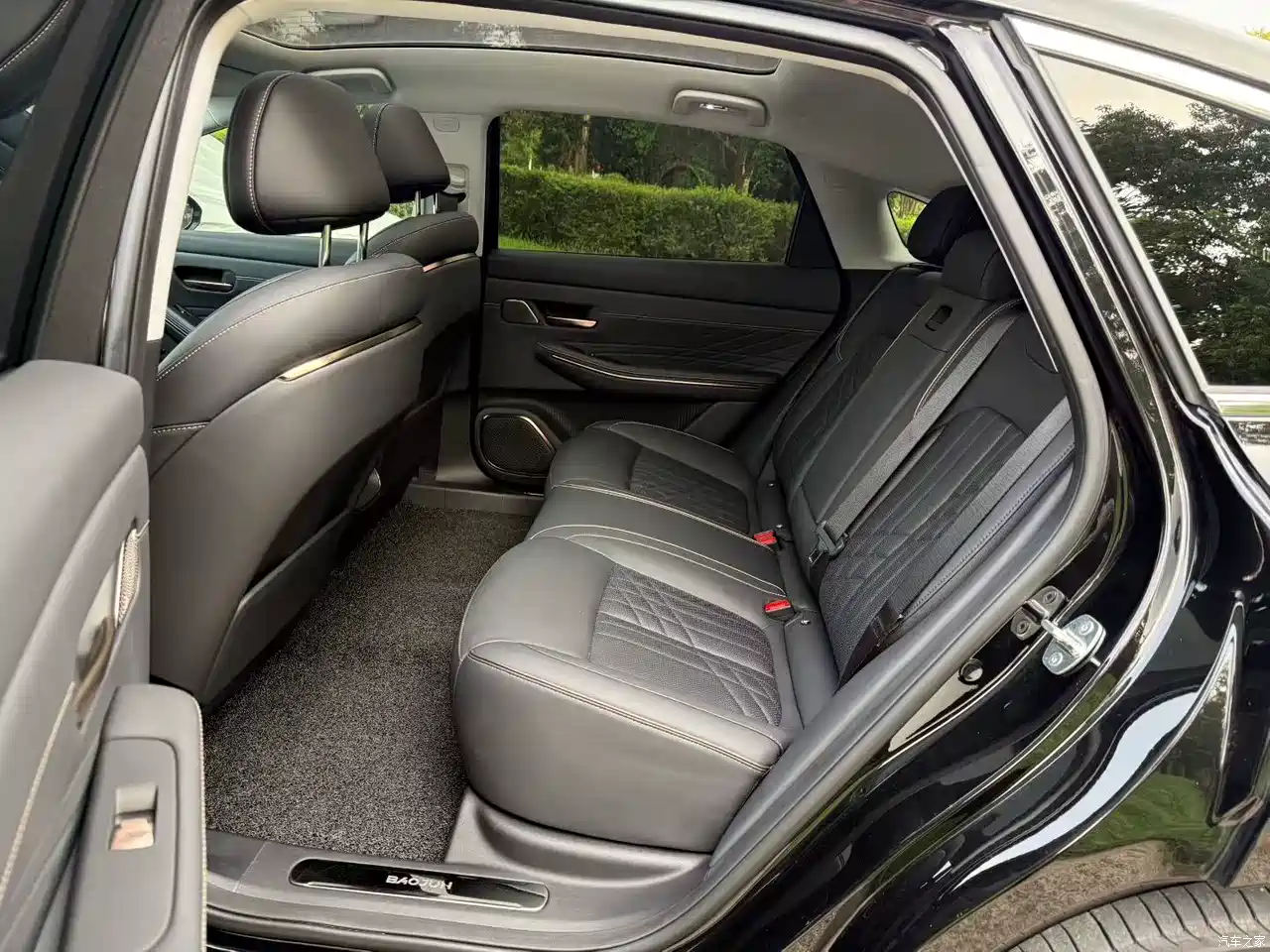 中大型轿车水准。2900mm轴距后排3个成年人都完全可以的,中央地台平整不影响中间乘客。后备厢测试可放3个28寸箱,放倒后一家人的出行装备轻松容纳,掀背尾门实用性拉满。