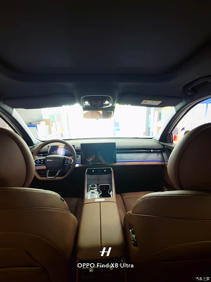 这一套内饰设计方案在奇瑞几款车里面都在用,比如风云T9。不同的是瑞虎九x的内饰颜色更丰富。看上去更新颖! 内饰的用料也是很讲究,宣传采用的母婴级环保材料,但是我坐进车里还是能闻到一点行车的味道!15.6英寸,2.5K的大屏,不管是导航还是看电影都非常清晰!