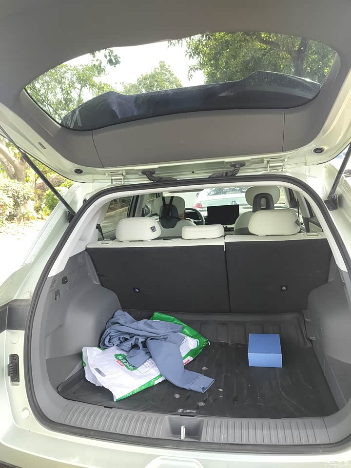 悦意03的空间完全不像这个级别的车型该有的水准。驾驶位的空间很充裕,后排空间更是惊喜,完全可以轻松坐下三个成年人,座椅的靠背角度和填充也很舒服。上次全家自驾游300公里,后排的家人全程都没说累,下车后状态也很好。后备箱空间同样实用,开口够大,进深也足够,十几个大大小小的纸箱和杂物,轻轻松松就塞下了,很实用。