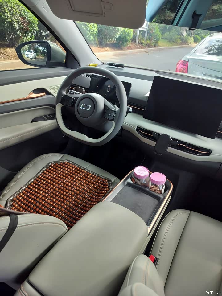 我选的是米色内饰,看起来特别温馨,和雀舌翠的外观搭配起来也很协调。最值得夸的是用料十足,触手可及的地方基本都是软质材料包裹,摸起来质感很好,完全没有廉价感。提车的时候我特意留意了异味问题,结果发现车内基本没什么刺鼻的味道,只有一点点新车的淡淡皮革香,通风几天就完全消失了,这一点对有孩子的家庭来说太重要了,不用担心甲醛问题。座椅触感舒服,支撑性也很好,坐久了也不会觉得闷,完全不需要额外加装座椅套,既保留了原厂的质感,又省去了额外的花费。再加上全景大天幕的加持,整个内饰的通透感和高级感都提升了一个档次。