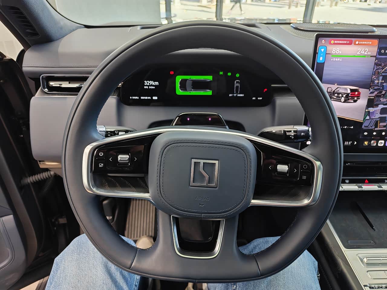 加速很快,4.3秒就可以这头3顿左右的巨兽送到100码的速度,踩下电门的瞬间推背感十足,但是电门调的很细腻,踩多少,有多少的感觉,底盘调校好,操控出色。因为车比较大,才开始驾驶起来略有不适应,主要是体积太大,怕擦挂,但开起来很平顺,另外还有360° 全景影像、透明底盘、激光雷达、车身传感单元,车辆周围的障碍物清晰可见,适应起来还是非常快。智驾也很好用,隔很远就能侦测到前面的道路信息。