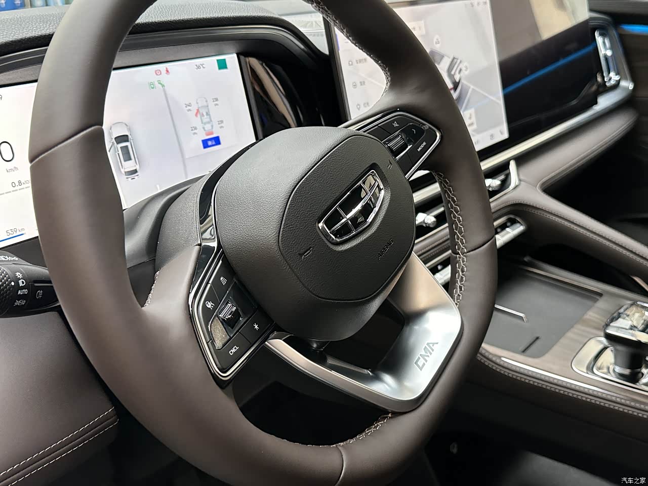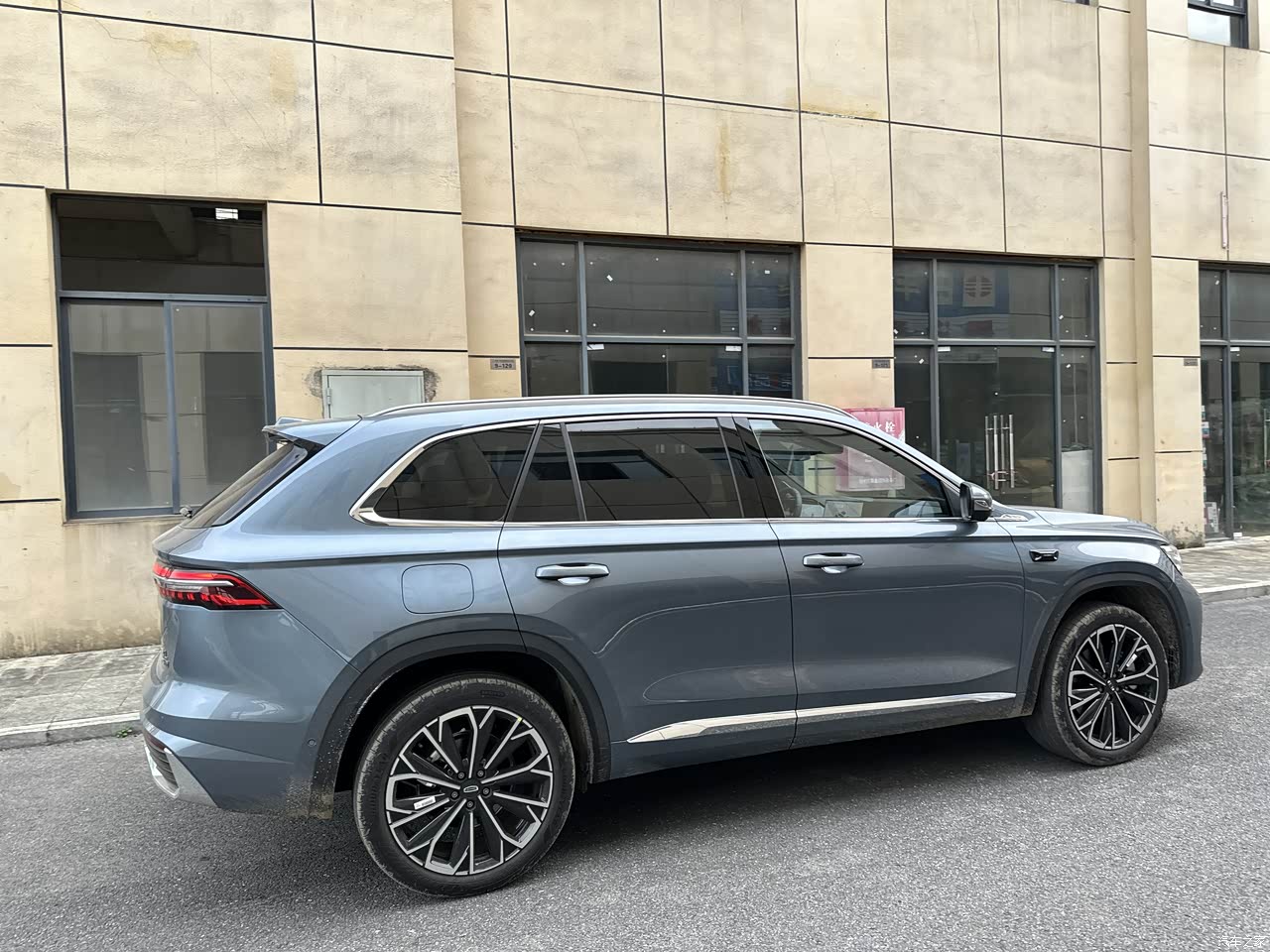 星越L的外观造型就属于硬朗又有型的类型,棱角分明的车身轮廓真是太帅了,包括这幅大尺寸的多幅条轮毂也是真的帅气,也的确能更迎合这十分运动的风格。