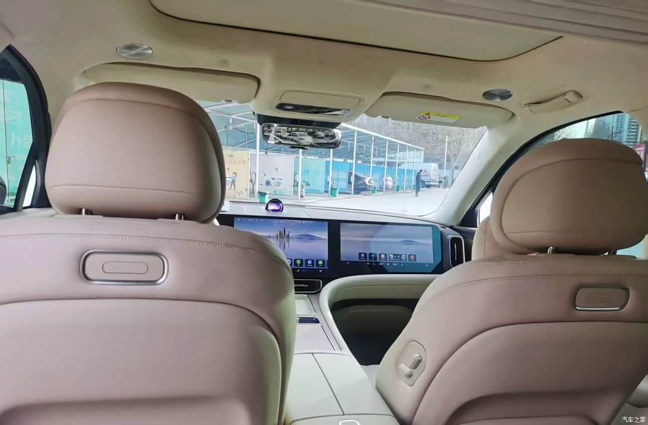 虽说浅色内饰不耐脏,但是质感这块没得喷,大面积软皮覆盖,手感柔软细腻,完全不会有仿皮那种粗硬的质感。扶手台、车门板用了实木做装饰,看上去不会那么单调。大屏从左到右直接贯穿,视觉效果确实很震撼,三个屏幕的功能不相同,仪表屏上看一些车辆相关的数据,中控屏上看导航、操作车上的功能,甚至因为有AR-HUD的功能,行车途中我几乎用不着低头看导航路线,做到眼不离路,驾驶更加安心。