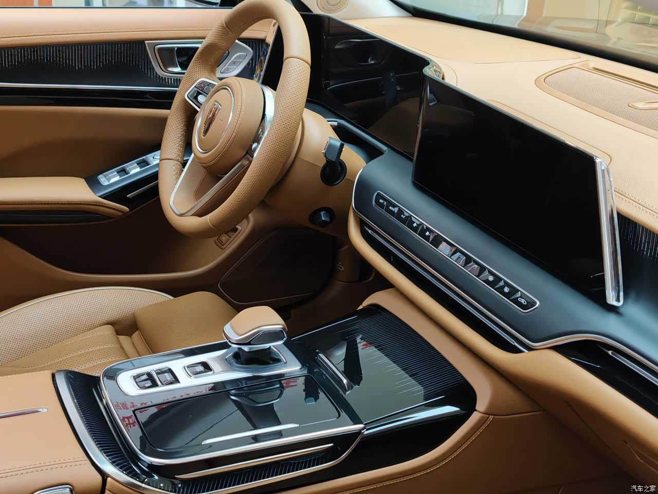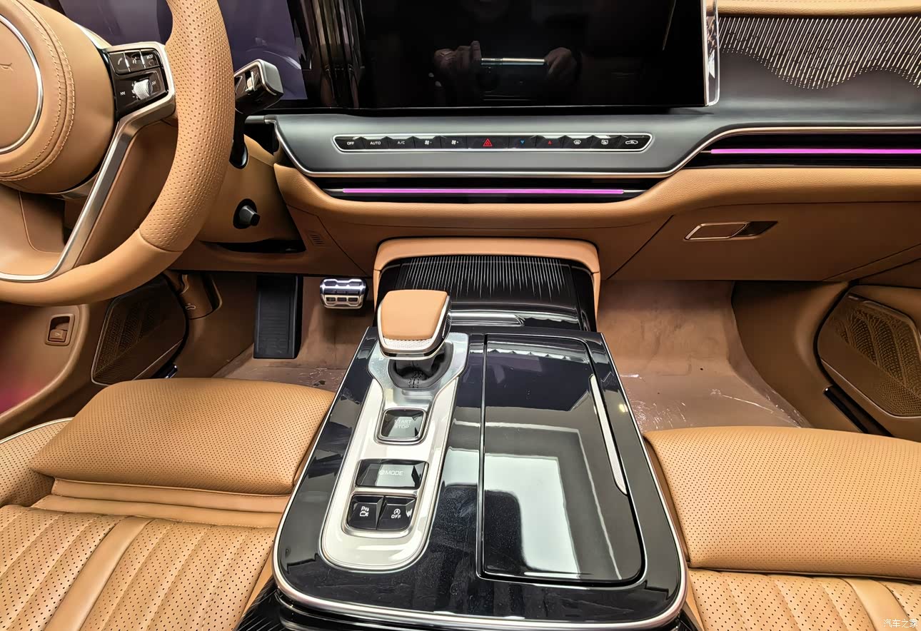 内饰的豪华感是我最满意的地方之一,浅棕色的内饰配色温馨又高级,和黑色的中控台搭配,层次感特别强。座椅采用了Nappa真皮质材料,不仅摸起来手感好,透气性也不错,夏天坐不会觉得闷。中控区域的钢琴烤漆面板搭配镀铬饰条,提升了内饰的精致感,空调出风口的设计也很有特色,贯穿式的造型和内饰的整体风格融为一体。方向盘的多功能按键布局合理,操作起来很顺手,座椅的调节按钮放在门板上,和很多豪华车型的设计一样,仪式感拉满。