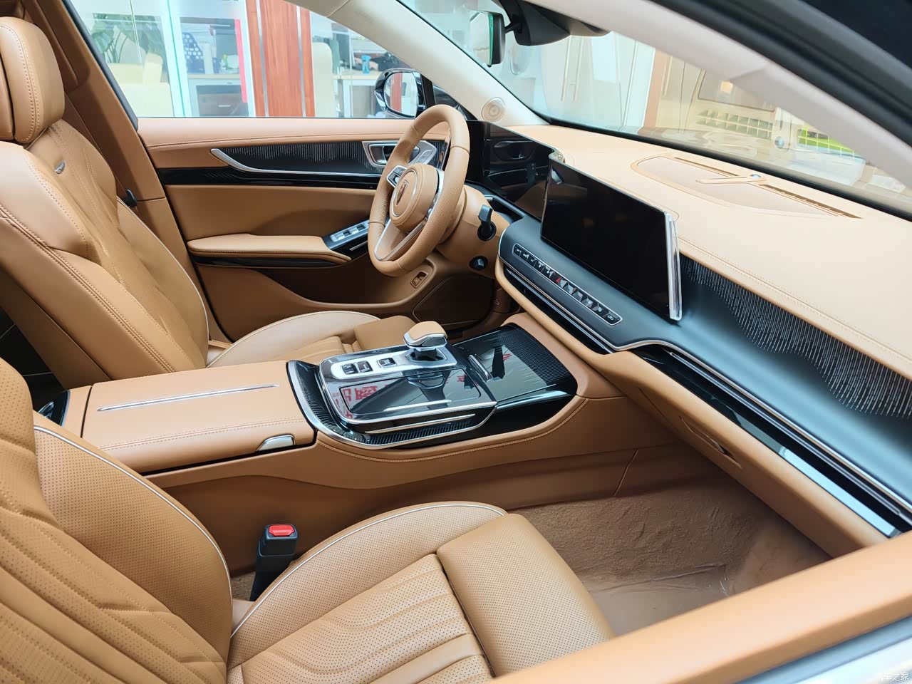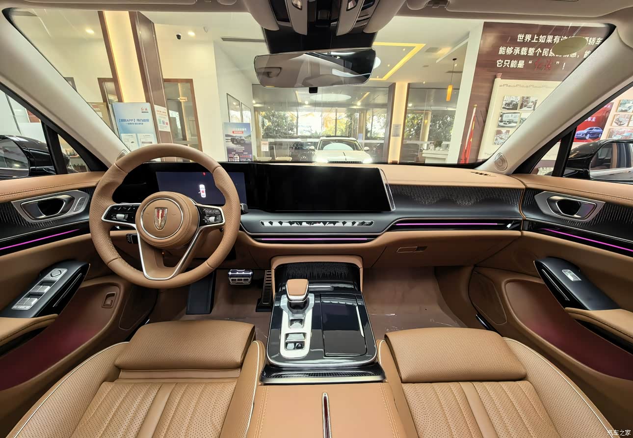 作为一名一直关注国产自主品牌高端车型的车友,前几天休年假回眉山,特地跑到家附近的融裕红旗体验中心静态体验了2025款改款红旗H9 2.0T两驱旗享豪华商务版5座,近距离接触这台国货中大型轿车旗舰,心里的感受还挺多的,今天就跟大家好好唠唠。 首先必须说最戳我的点,就是这台车的气场和内饰的豪华感,完全不输同级别合资车型。外观上的中式设计太对味了,往展厅里一摆,那种庄重又大气的感觉扑面而来,走在路上回头率绝对拉满。内饰的用料也很实在,触手可及的地方都是软质包裹和皮质材料,浅棕色的内饰配色高级感拉满,座椅的缝线和打孔工艺也特别精致,坐进去就感觉是进了一个豪华的移动客厅,完全符合“豪华商务”的定位。另外,配置也很贴心,像座椅加热、通风这些舒适性配置都给到位了,日常用起来特别方便。