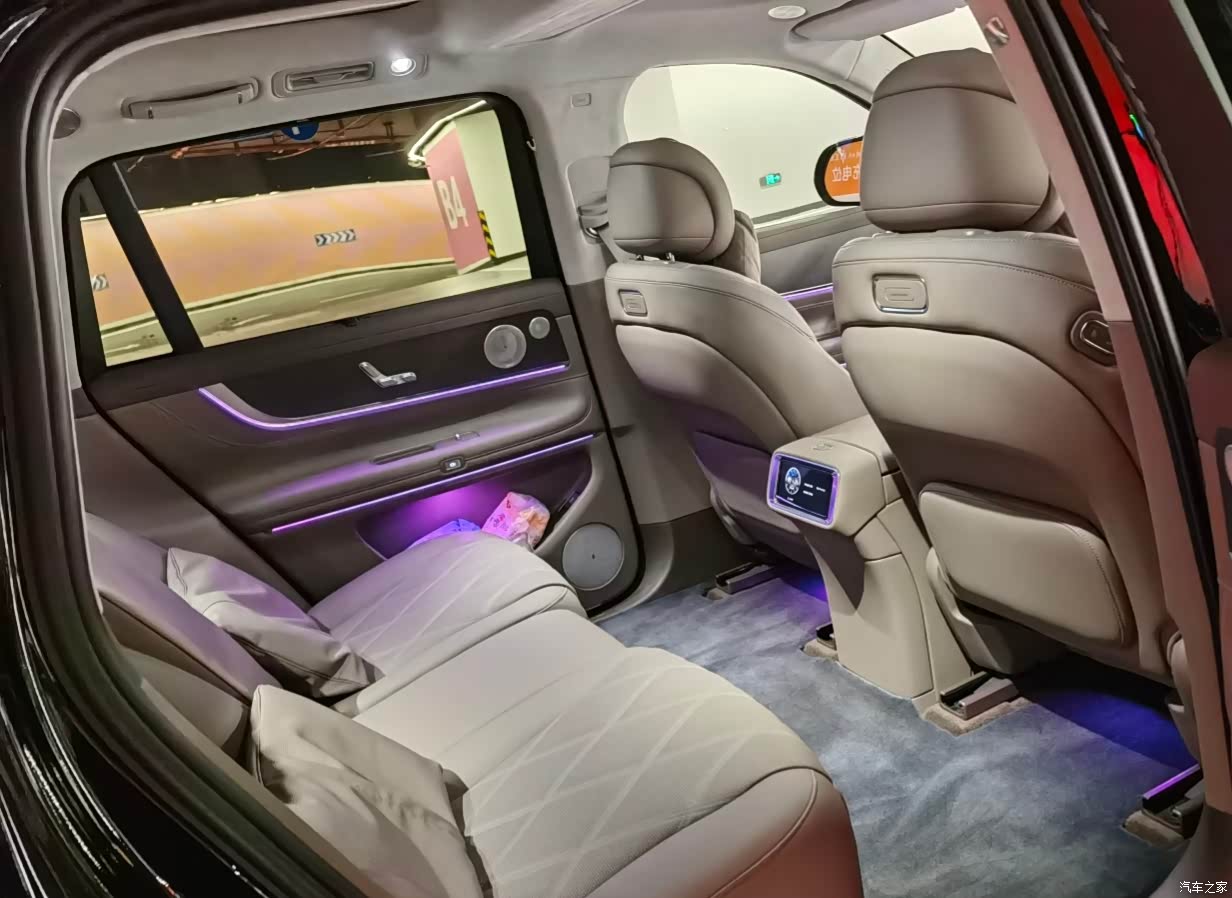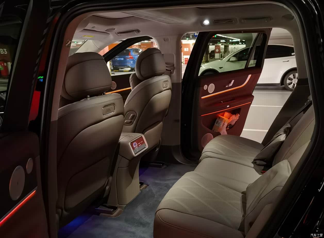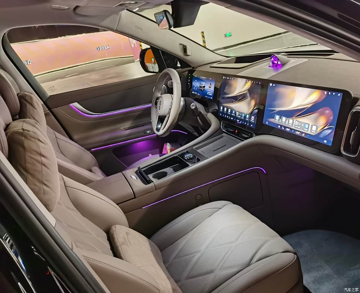 外观属于大气耐看的类型,我特别喜欢智能动态光毯功能,尤其是在晚上开车时,地上会亮起一道光带,引导我开车。黑漆漆的夜里看到这个,不仅很有仪式感,心里也觉得特别踏实。