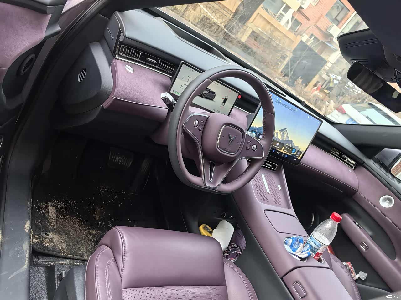 颜值和内饰质感必须排在首位,这款车外紫内紫的设计让颜值达到了满分的状态,所用材料很扎实,并且没有异味,看上去很舒服,坐进去之后也很舒心。